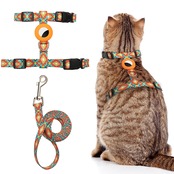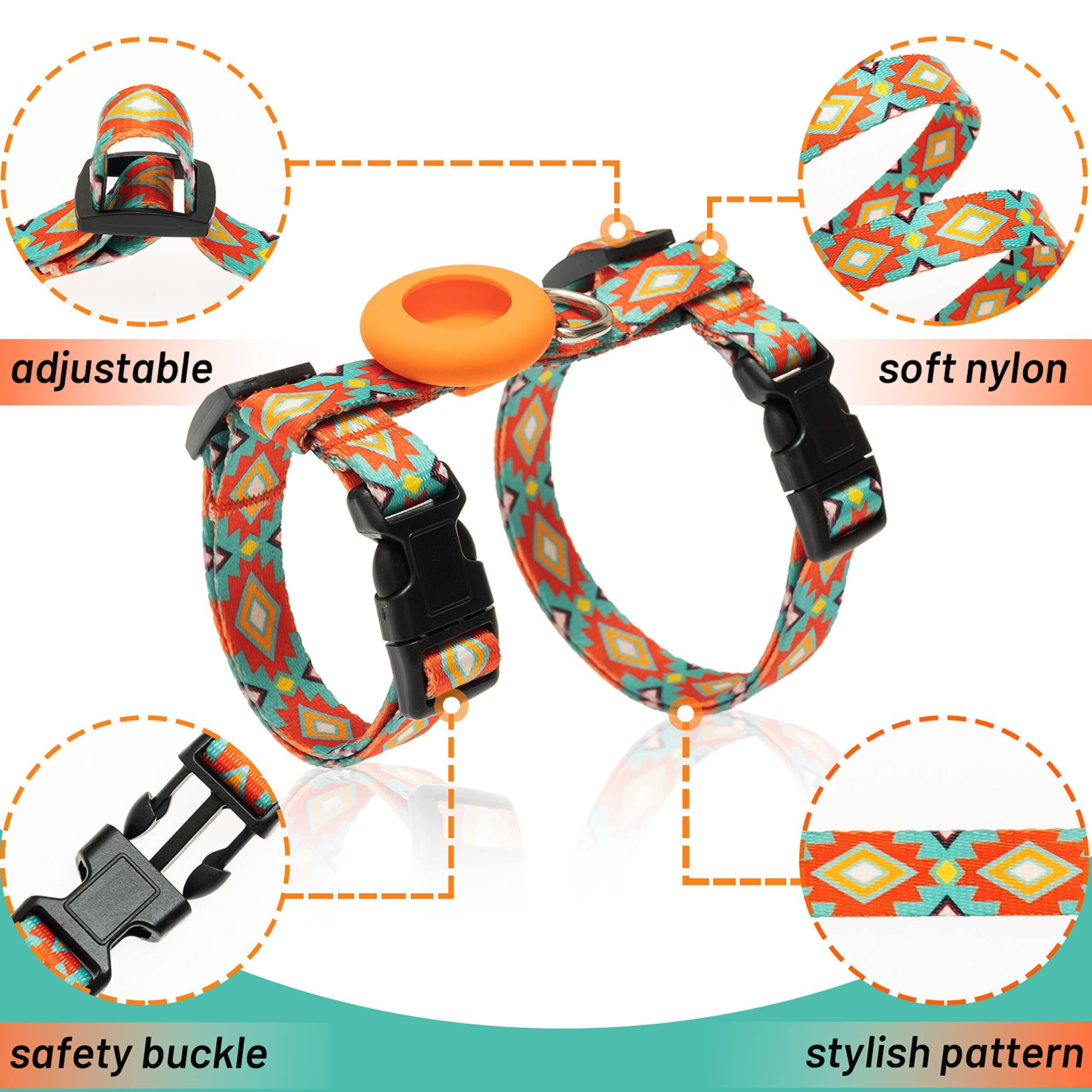 CUSOZWO 猫ハーネスとリーシュ脱出防止 散歩 旅行 アウトドア - ソフトナイロン 調節可能 かわいい猫ハーネス リーシュセット エアタグホルダー付き 小型 大型猫用