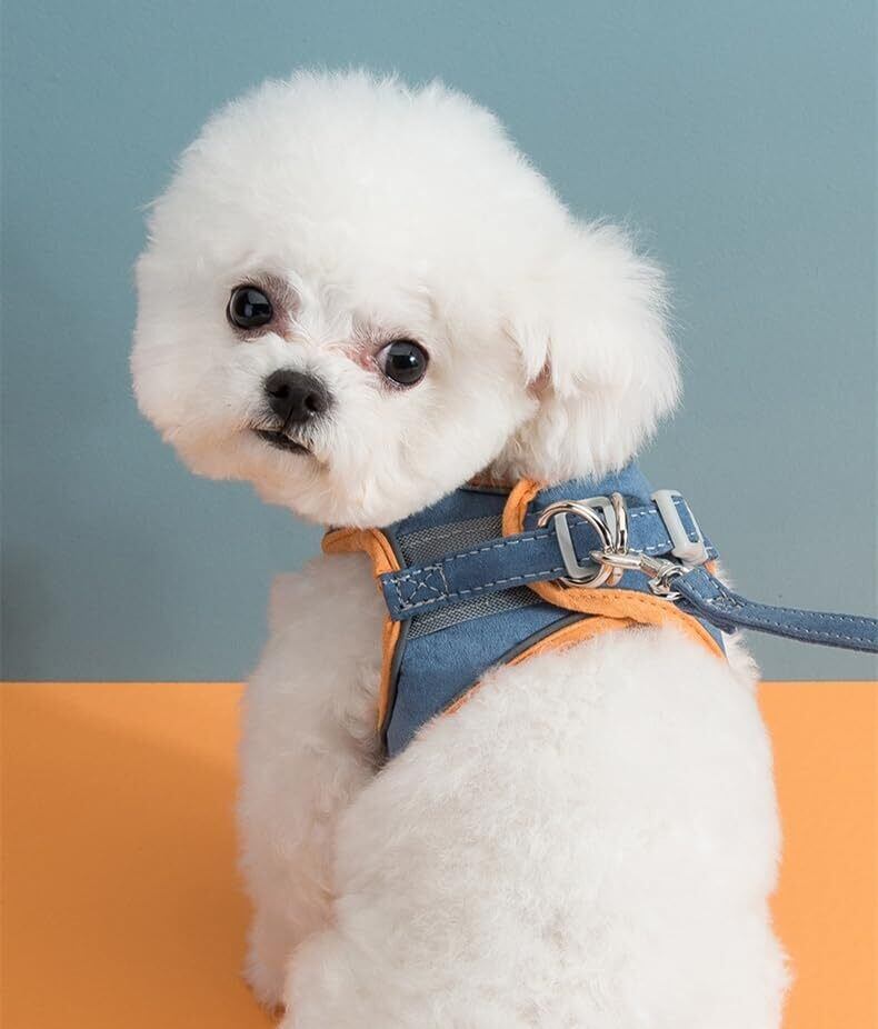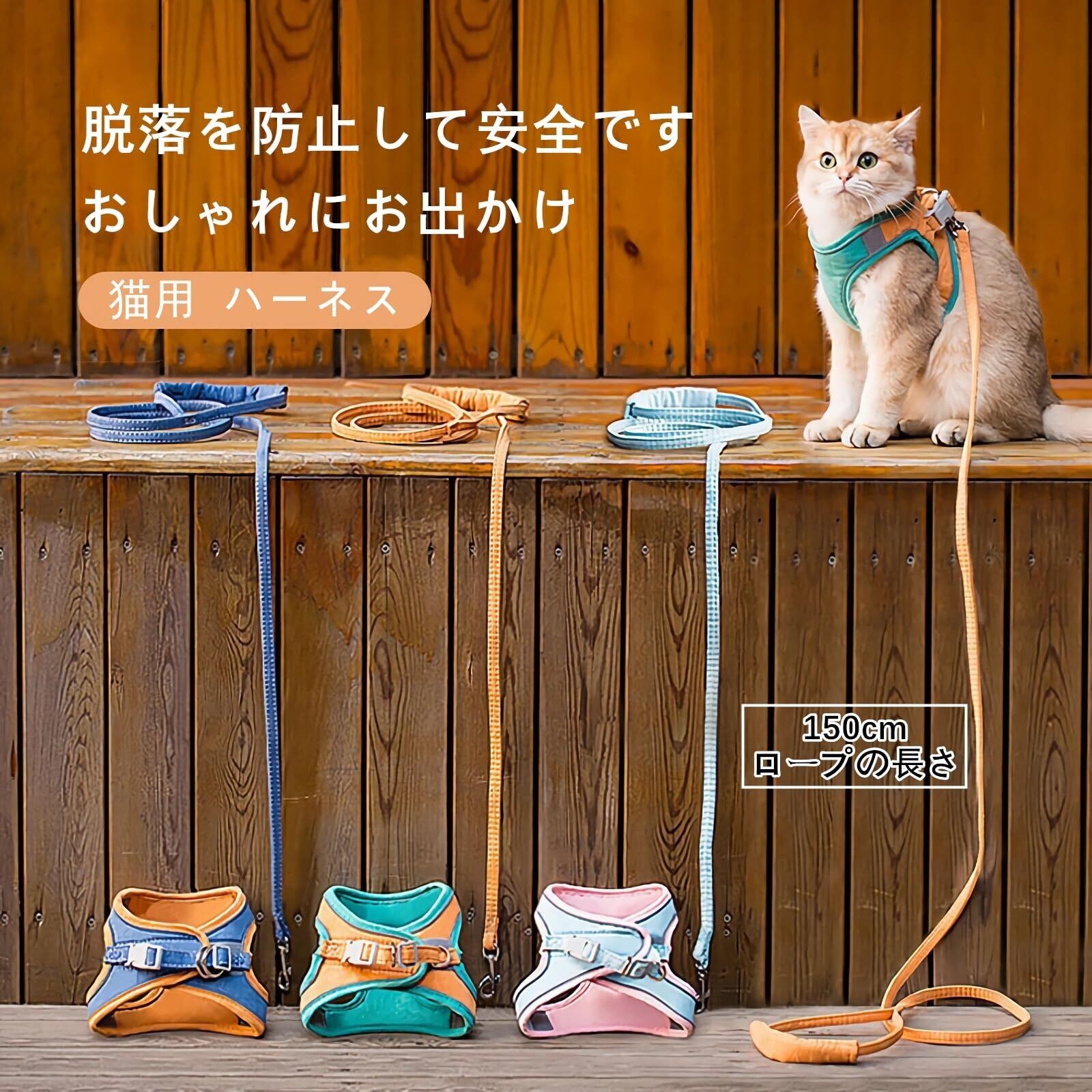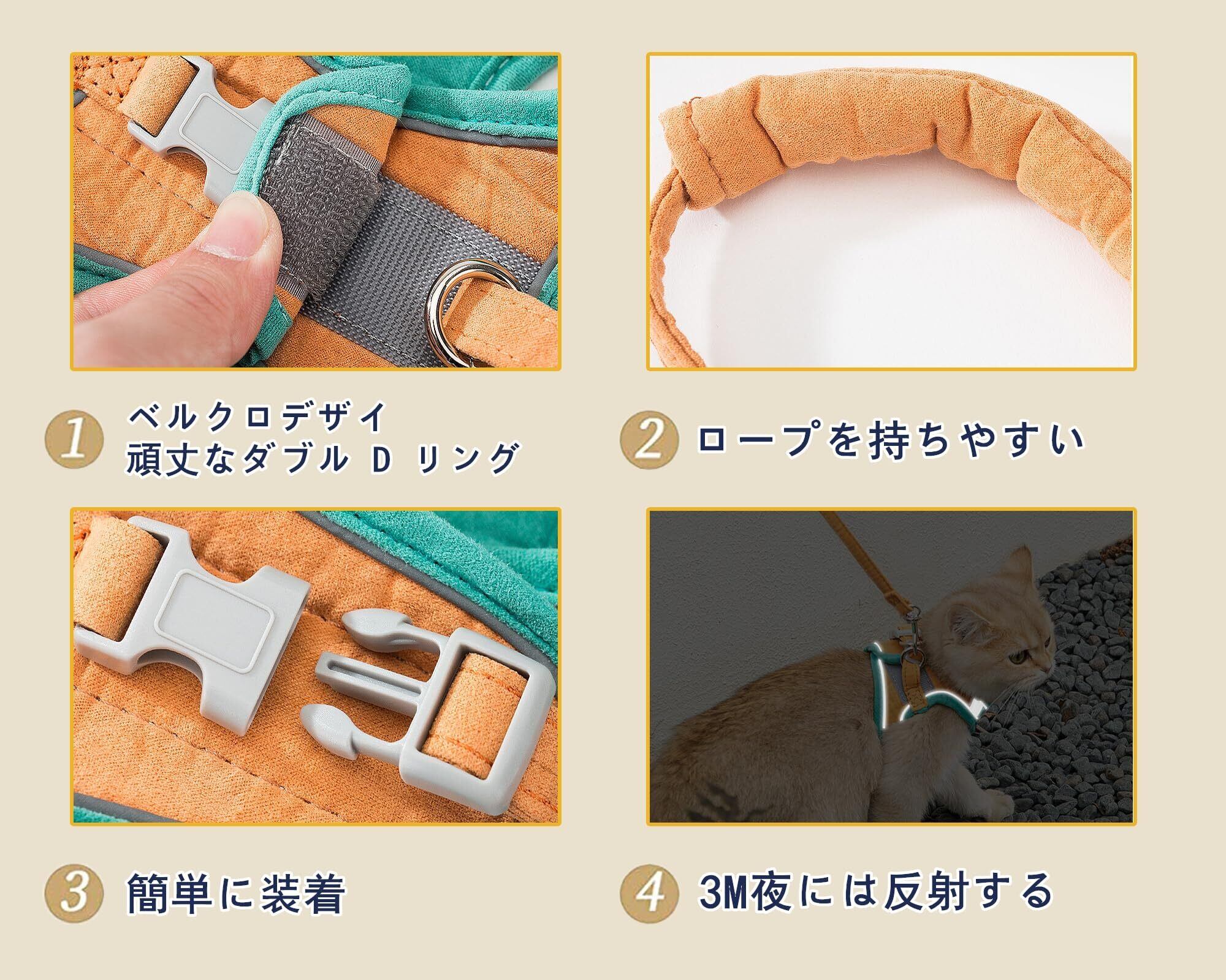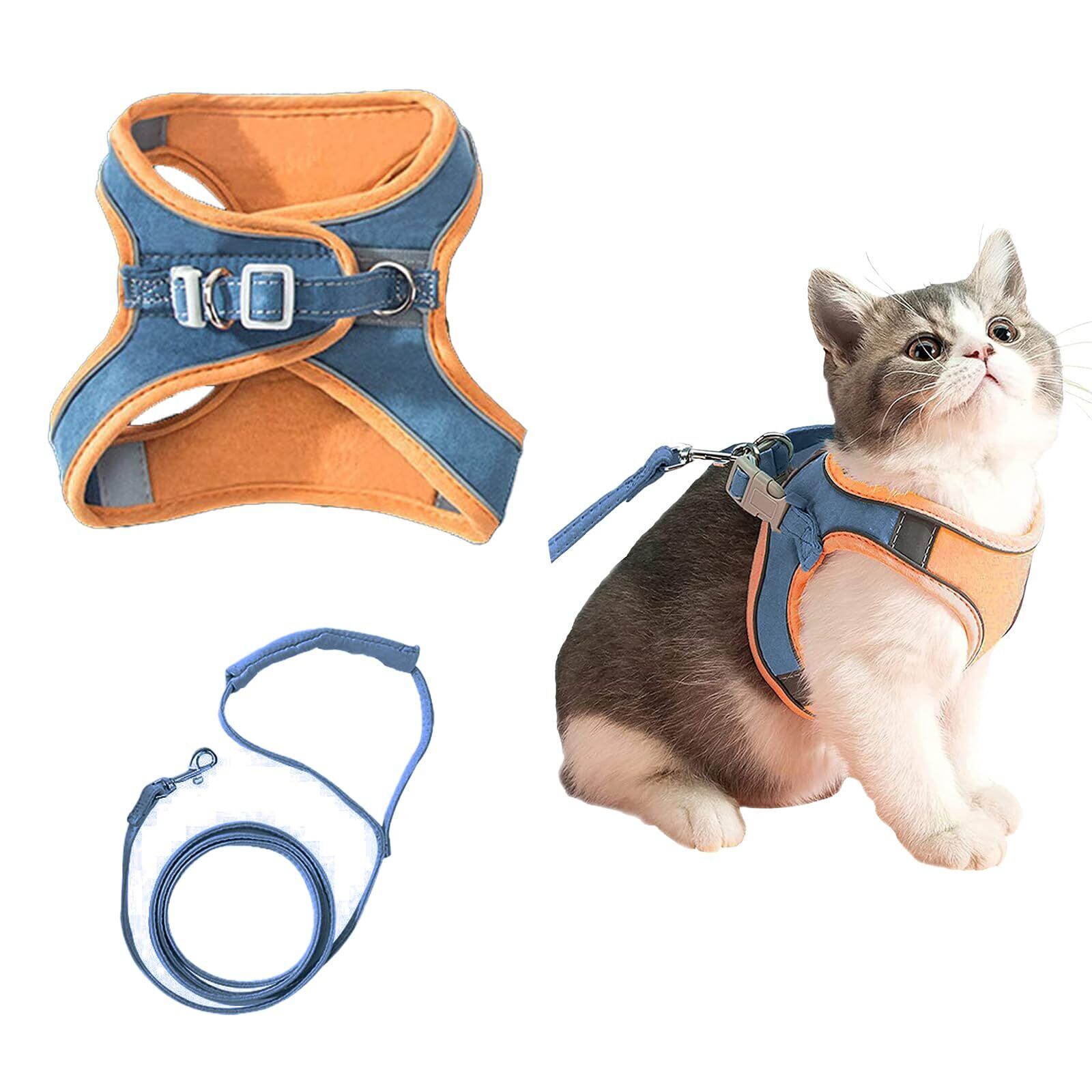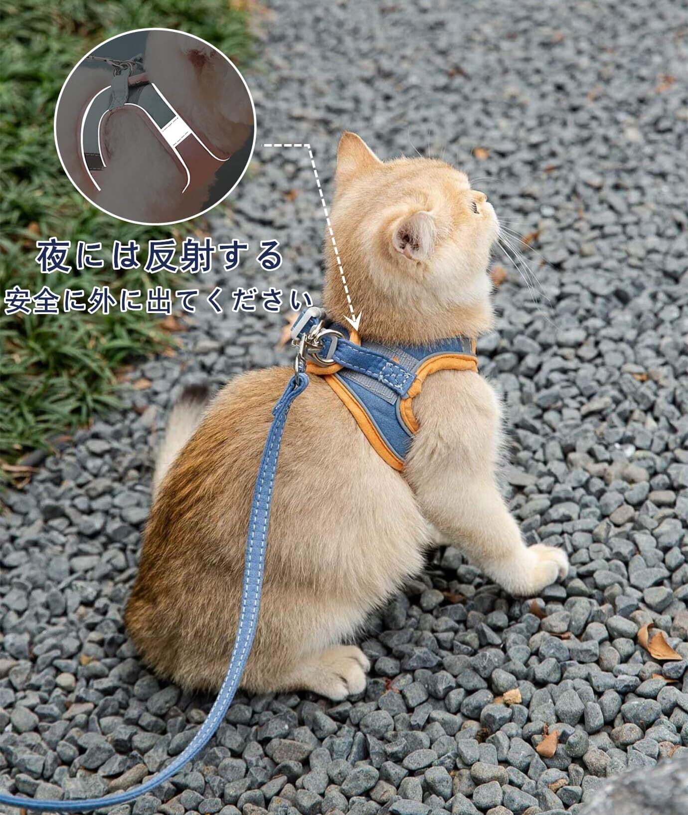 Peukialt 猫用 ハーネス 胴輪 猫具 ねこ ネコ 子猫 小型犬 犬猫兼用 ソフト胸あて 散歩 お出かけ 抜けない ベスト ソフト胸あて 軽量 夜反射 通気メッシュ サイズ調節可 ナイロンバックルで留める (オレンジ、ダークブルー, S)
