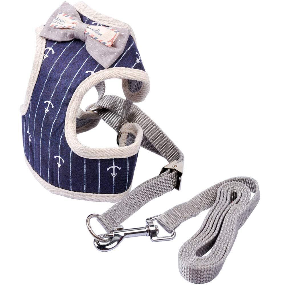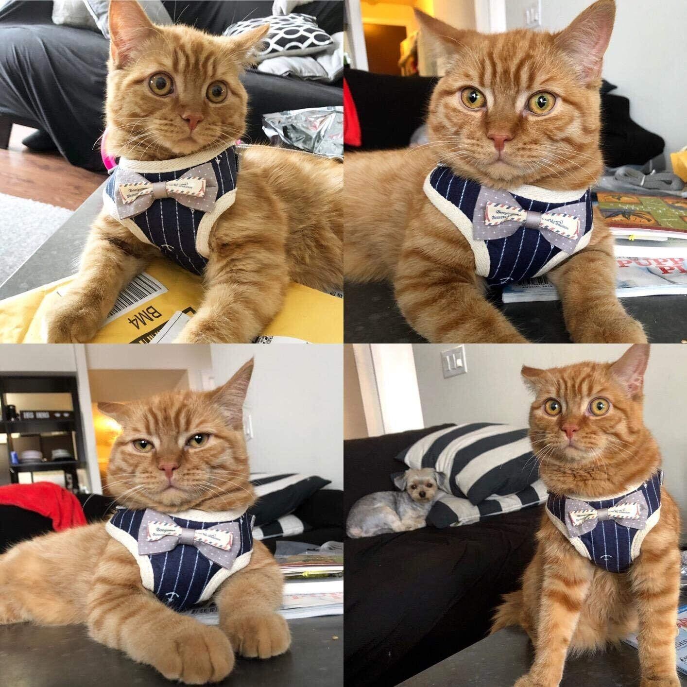おしゃれな猫ハーネスで可愛さUP:縦ストライプ&キュートなフラワーボウタイ付きで、おしゃれ度抜群 お散歩中も注目の的に!