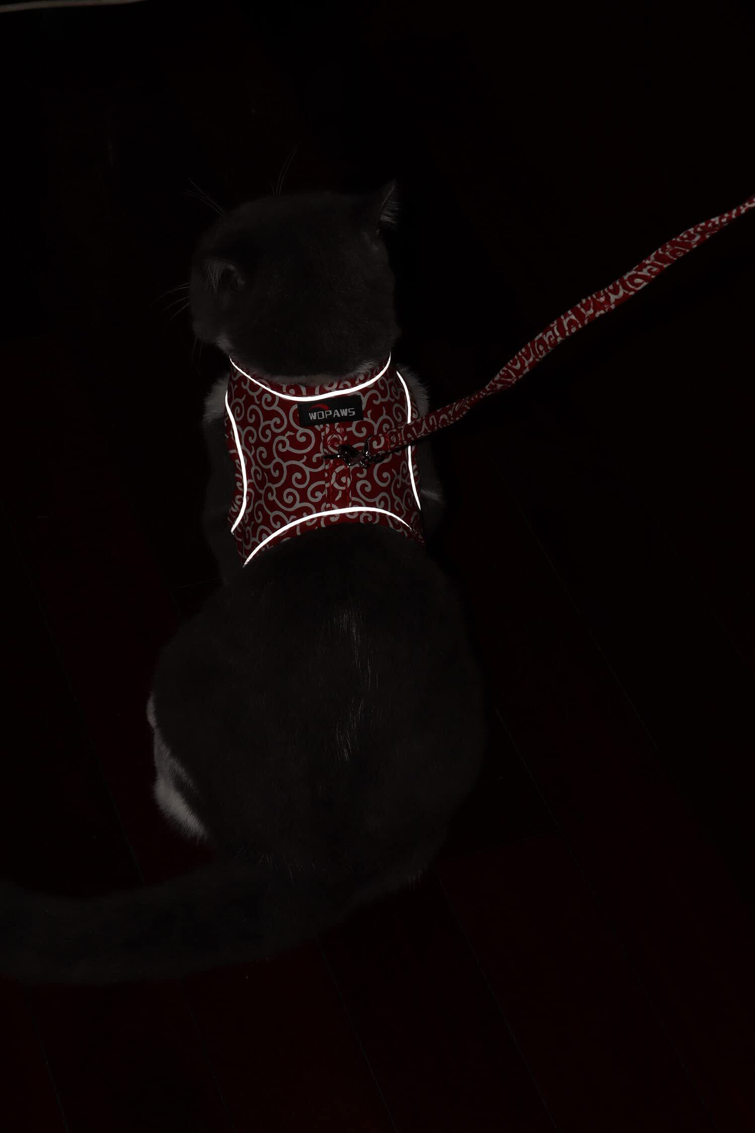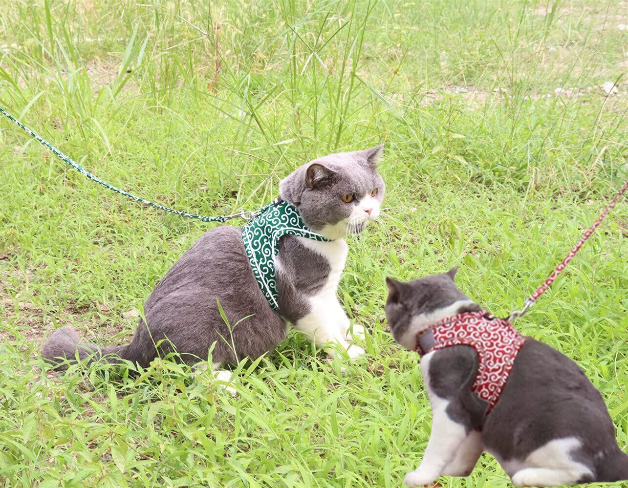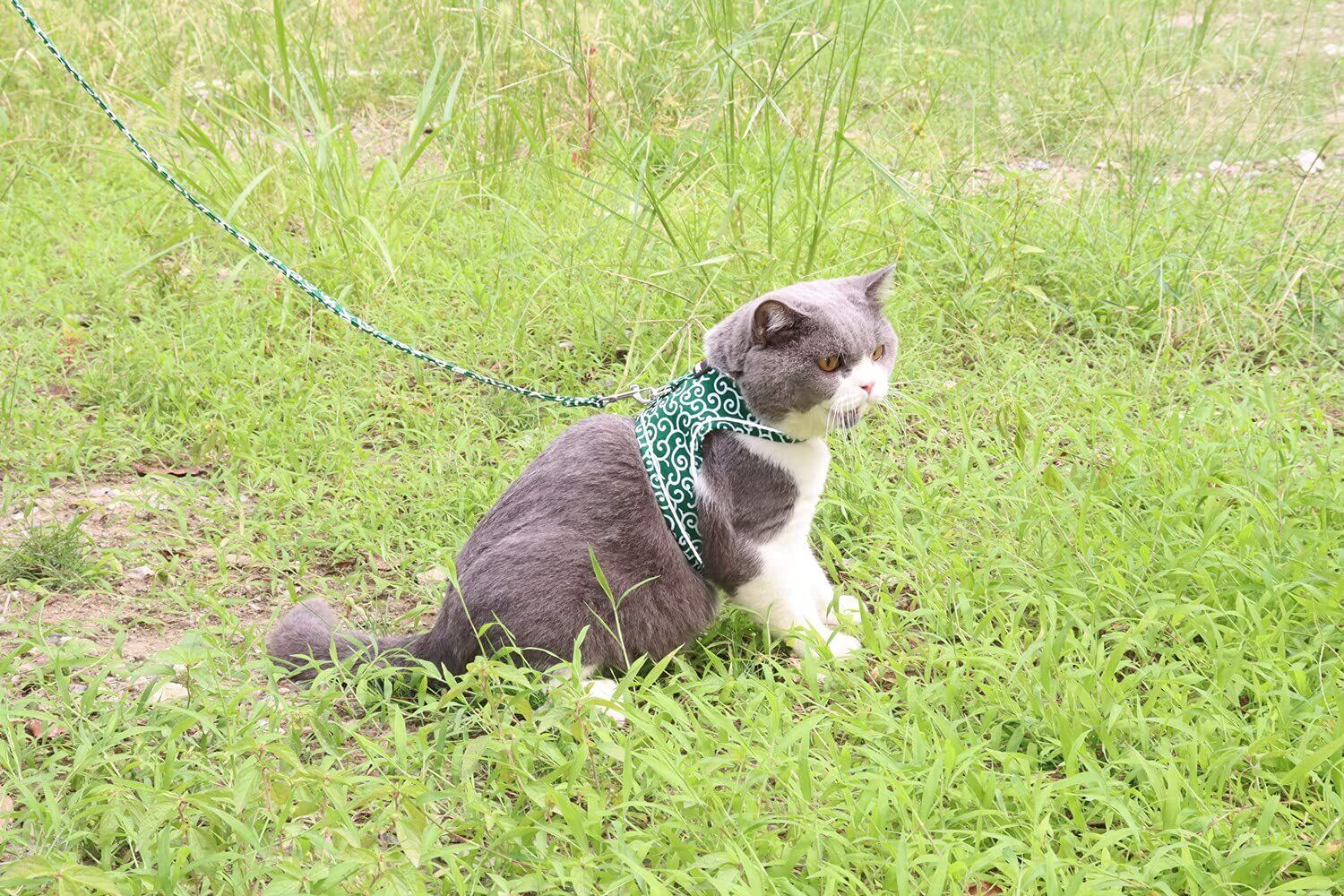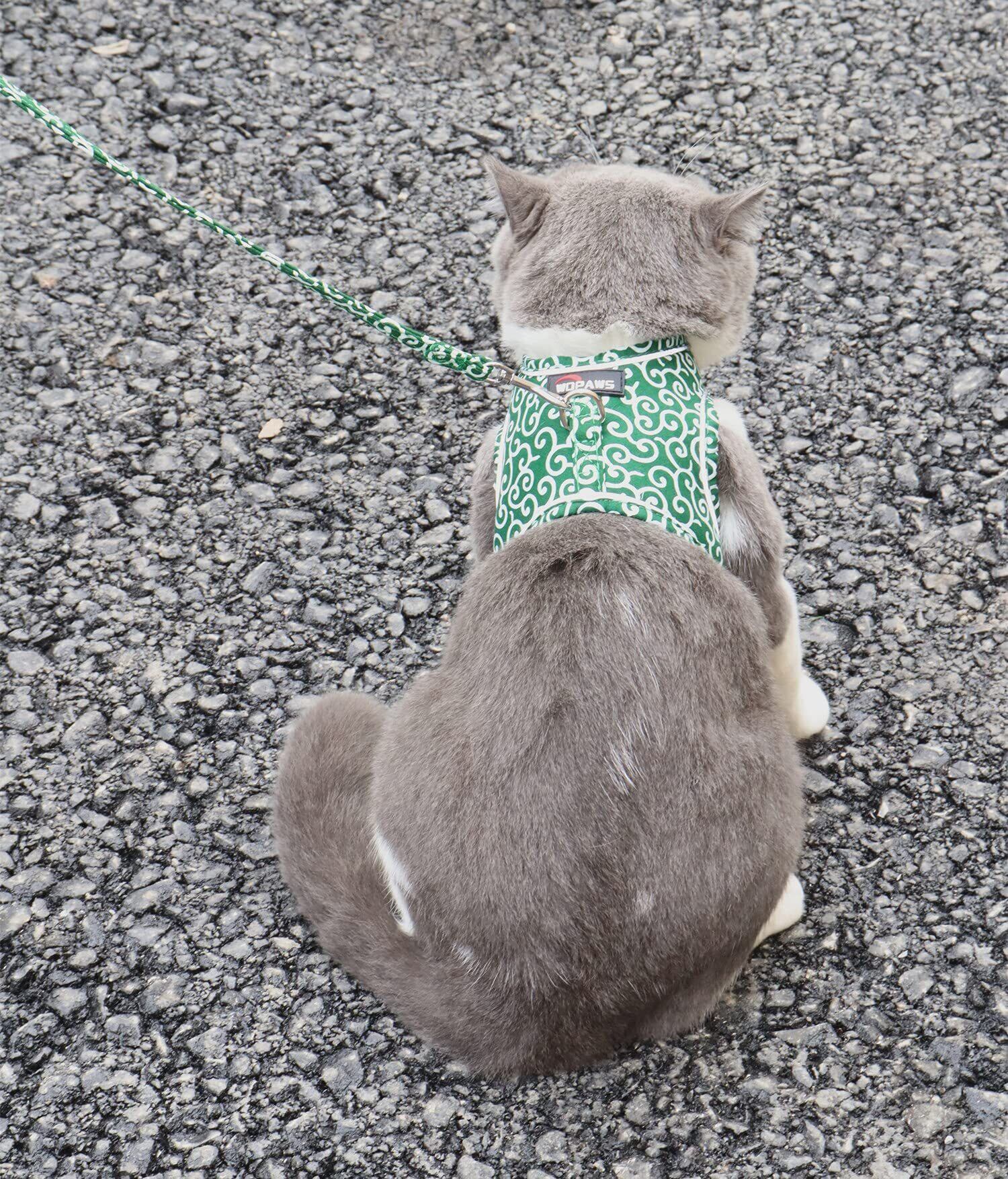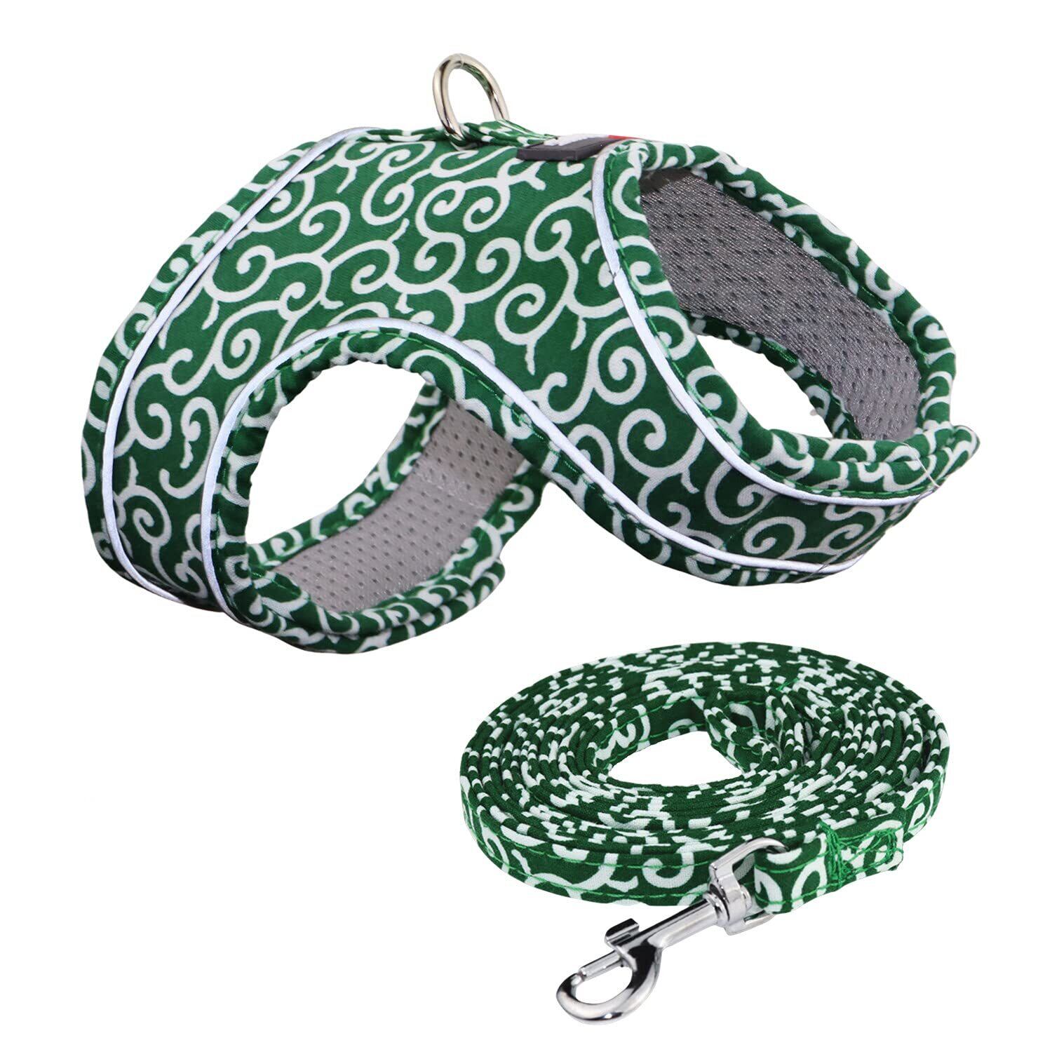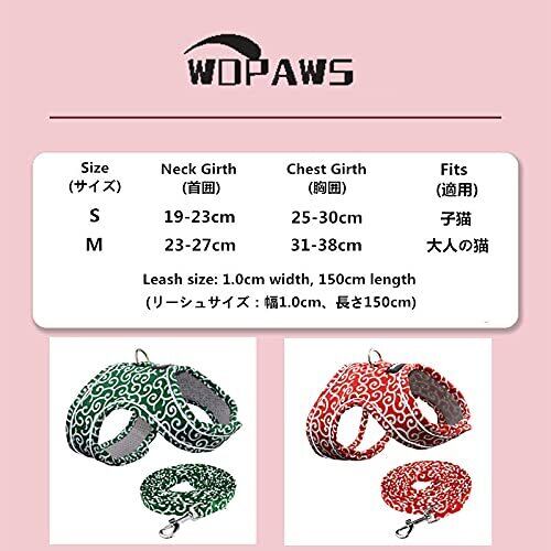 WDPAWS 猫用 ハーネス 胴輪 ネコ 子猫 子犬 小型犬 散歩 お出かけ 抜けない ベスト ソフト胸あて 通気性 軽量 頭を通さずマジックテープで着脱簡単 牽引ロープ ハーネス リード セット 唐草模様 夜間反射 サイズ調節可能 (M, 唐草模様緑)