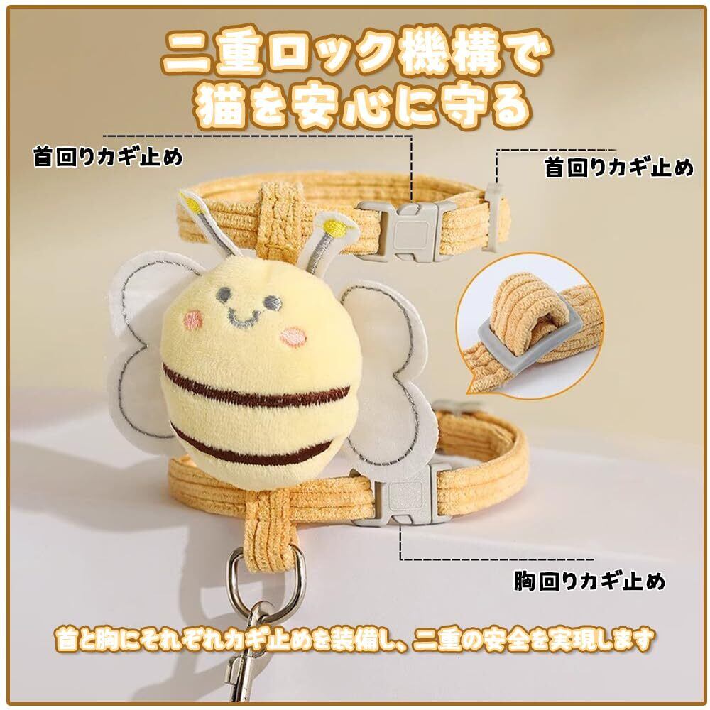 BOOHUQICH 猫 ハーネス 猫用 ハーネス 抜けない 脱走防止 簡単脱着式 可愛い 軽量 超小型犬 子猫 (イエロー)