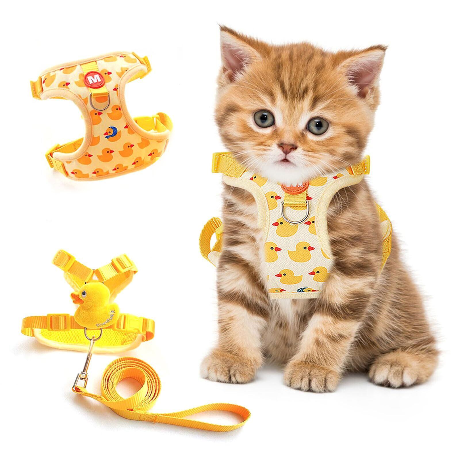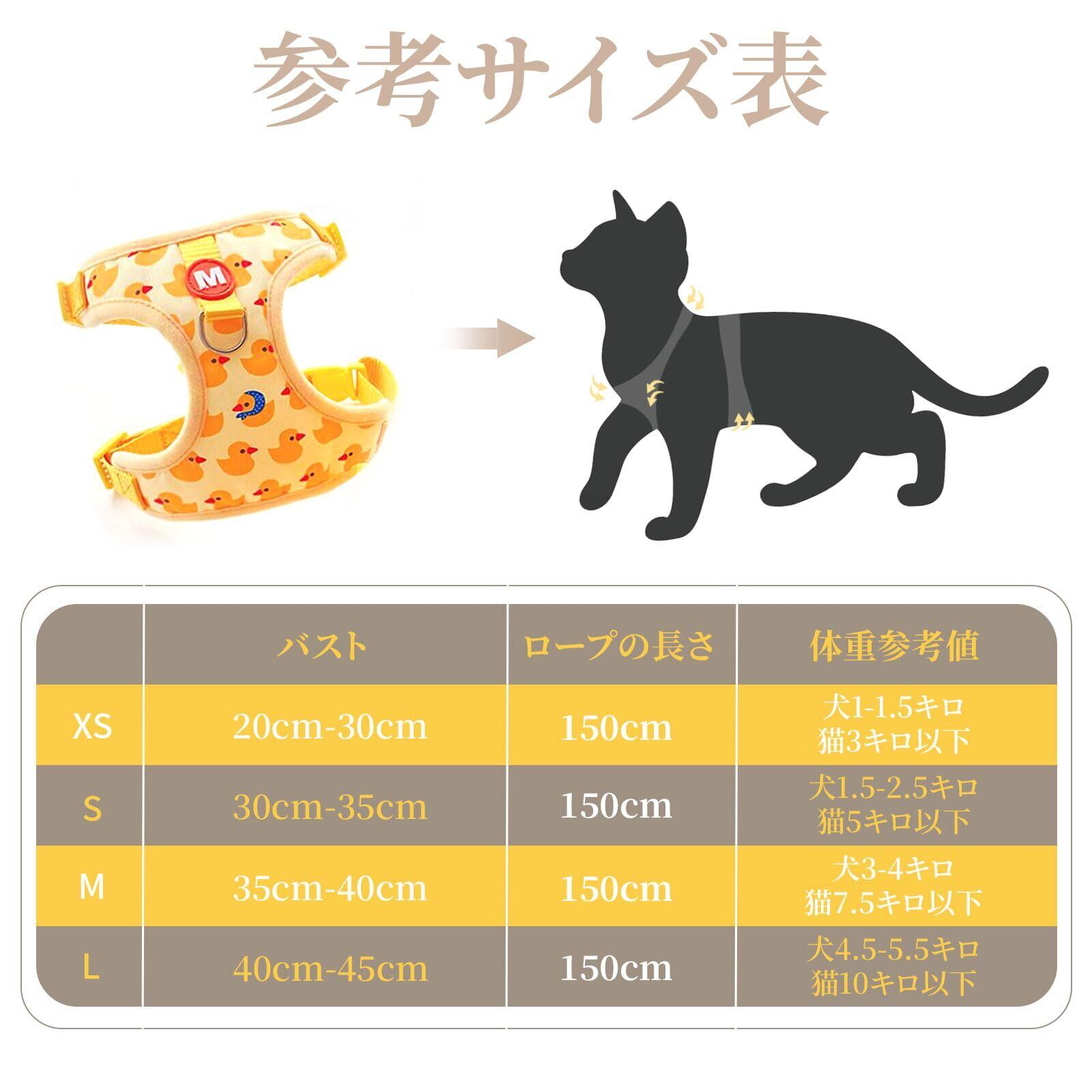 お手入れ簡単な猫用ハーネス:リードコード付きのこの猫用ハーネスはXS/S/M/Lサイズがあり、子猫、子犬、中小型犬や猫に適しています。かわいいプリントパターンでデザインされており、ペットをより可愛く見せます。汚れがついても拭き取りやすいです。