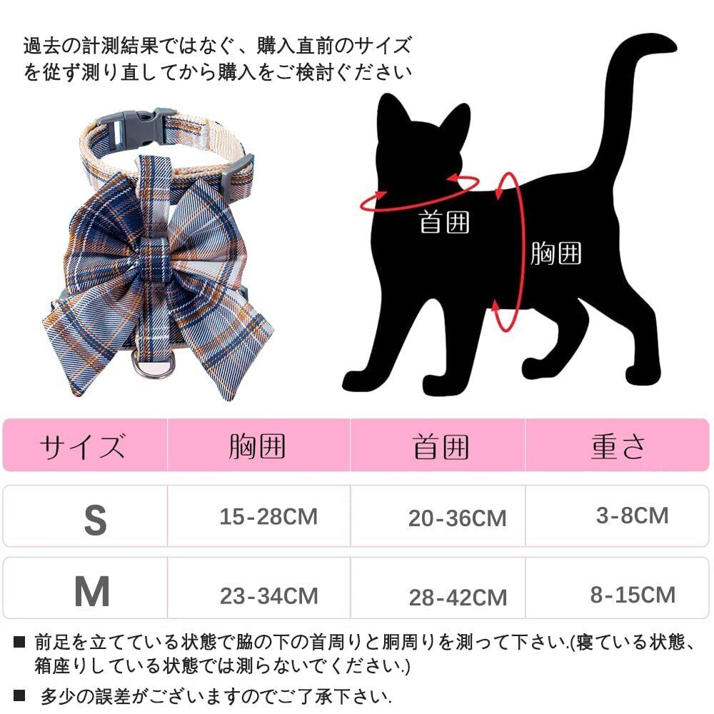 【サイズ】:リードの長さは120cm。サイズは2種類あり、S(首回り:15-28cm バスト:20-36cm 推薦体重:3~8 g);M(首回り:23-34cm バスト:28-42cm 推薦体重:8~15 g)。ご注文前にペットを測定してください。猫が2つのサイズの間にある場合は、より大きいサイズを選択してください。