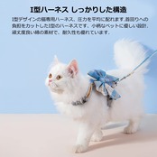 【装着簡単&エ字型脱出防止】この猫用ハーネスは首輪とリードの取りやすいバックル、リードと本体の取り外しもワンタッチで簡単にできます、ペっとの頭を通過する必要がなく。 散歩や旅行などの室外活動、ペット一緒に出掛けます。愛猫が紛失する心配要りません。首のみにかける首輪に比べて、エ字型の首輪が引張力を分散でき、猫ちゃんが全然苦しくならない。猫の関節の動きに邪魔せず、足が動きやすいです。