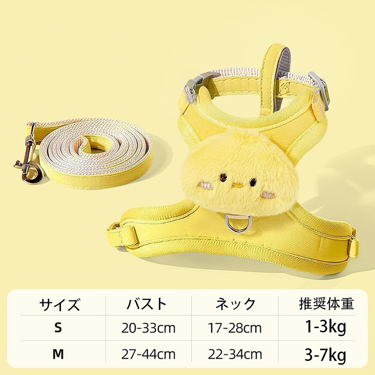猫 ハーネスリード 猫牽引ロープ 猫ハーネス 猫用 胴輪 猫具 軽量 抜けない ダブルロック 子猫 子犬 小型犬 散歩 お出かけ かわいい 犬猫兼用 簡単装着 サイズ調節可 リード付き (イエロー+ロープ長1.2m, M(ネック:22-34cm バスト:27-44cm))