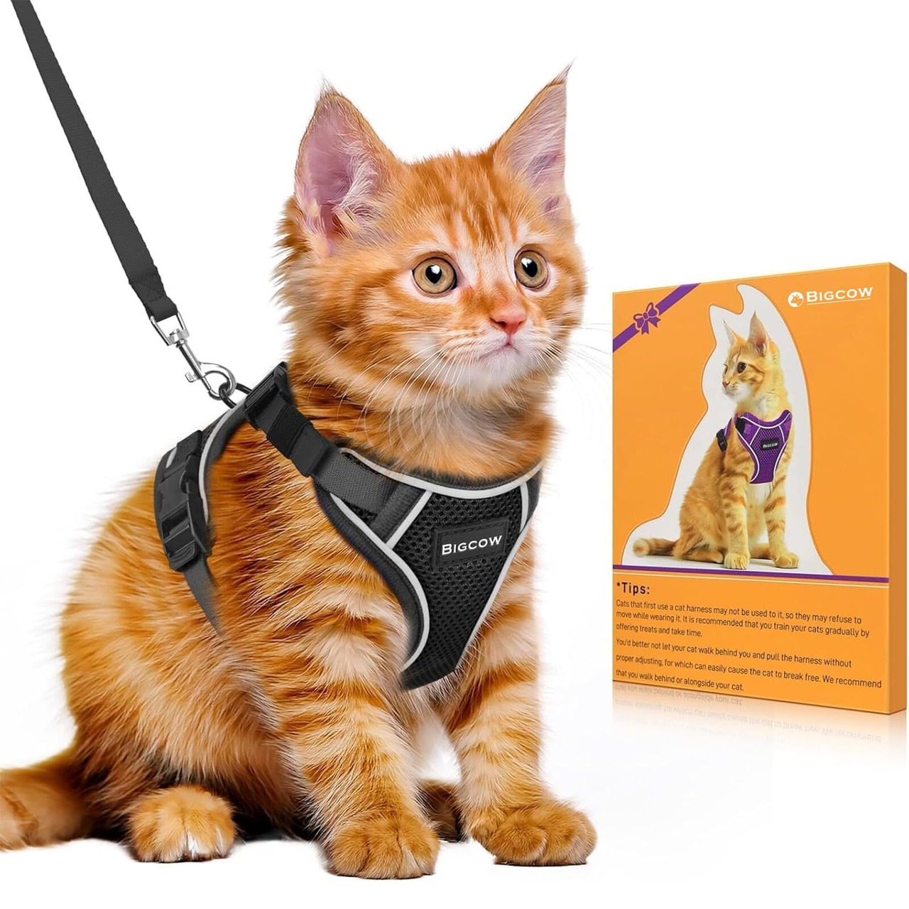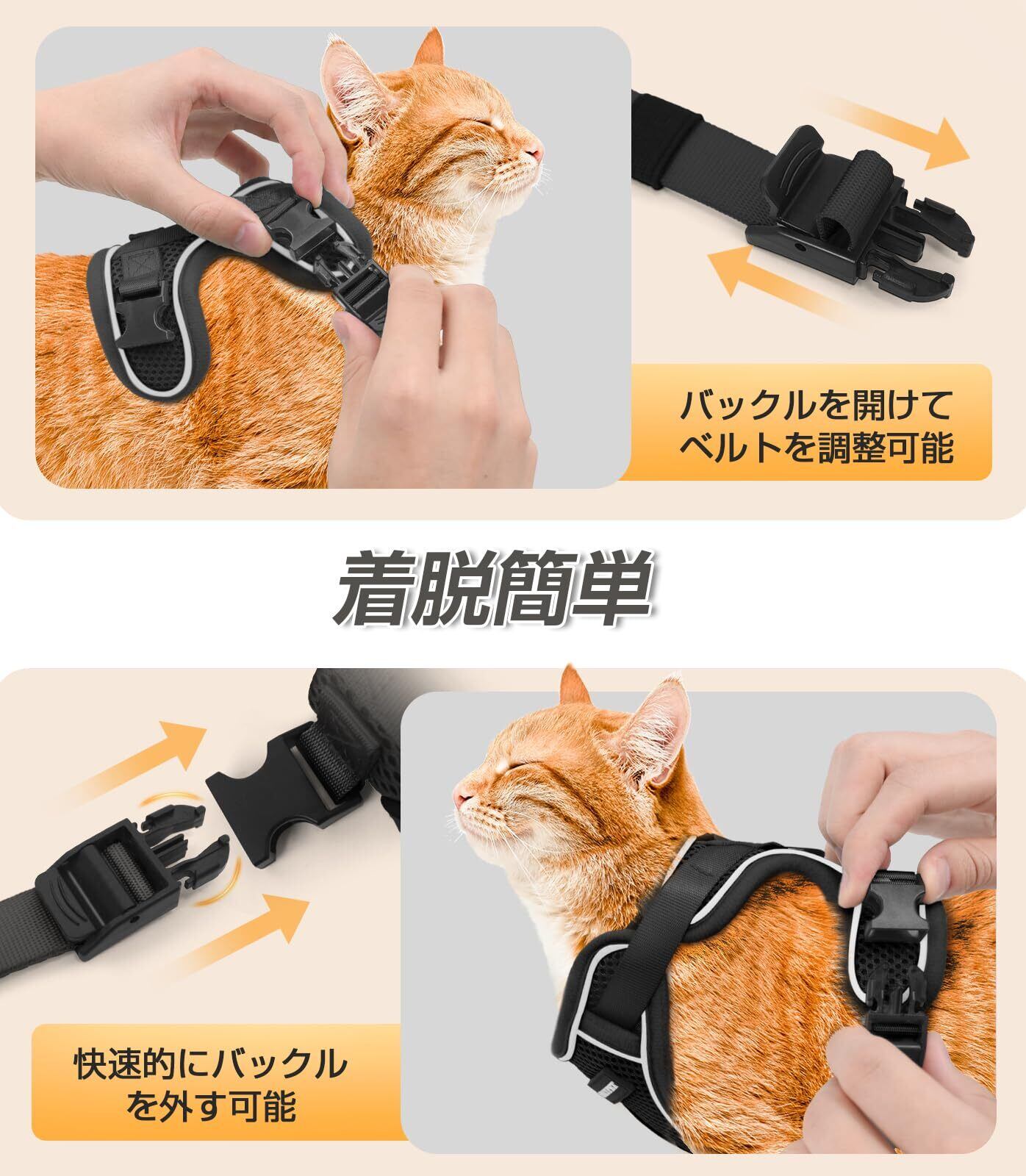猫 猫用 ハーネス リード 抜けない 専用 ハーネス 猫牽引ロープ リード 猫 猫具 調整可能 簡単装着 防災 超軽量 柔らか素材 首輪 胴輪 反射材 散歩用 お出かけ ベスト ねこ ネコ ソフト胸あて 咳込み防止 取付説明書付(黒 Mサイズ)