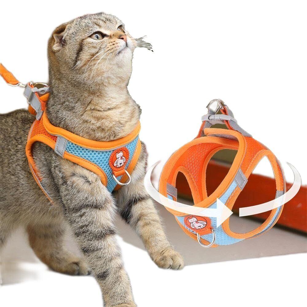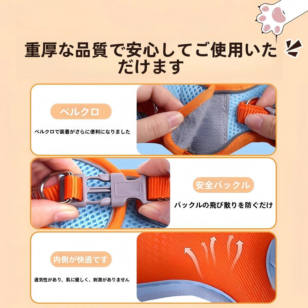 猫ストラップ牽引ロープセット通気メッシュ夜反射縞付き猫体輪猫散歩軽量通気素材猫用犬用 (S)