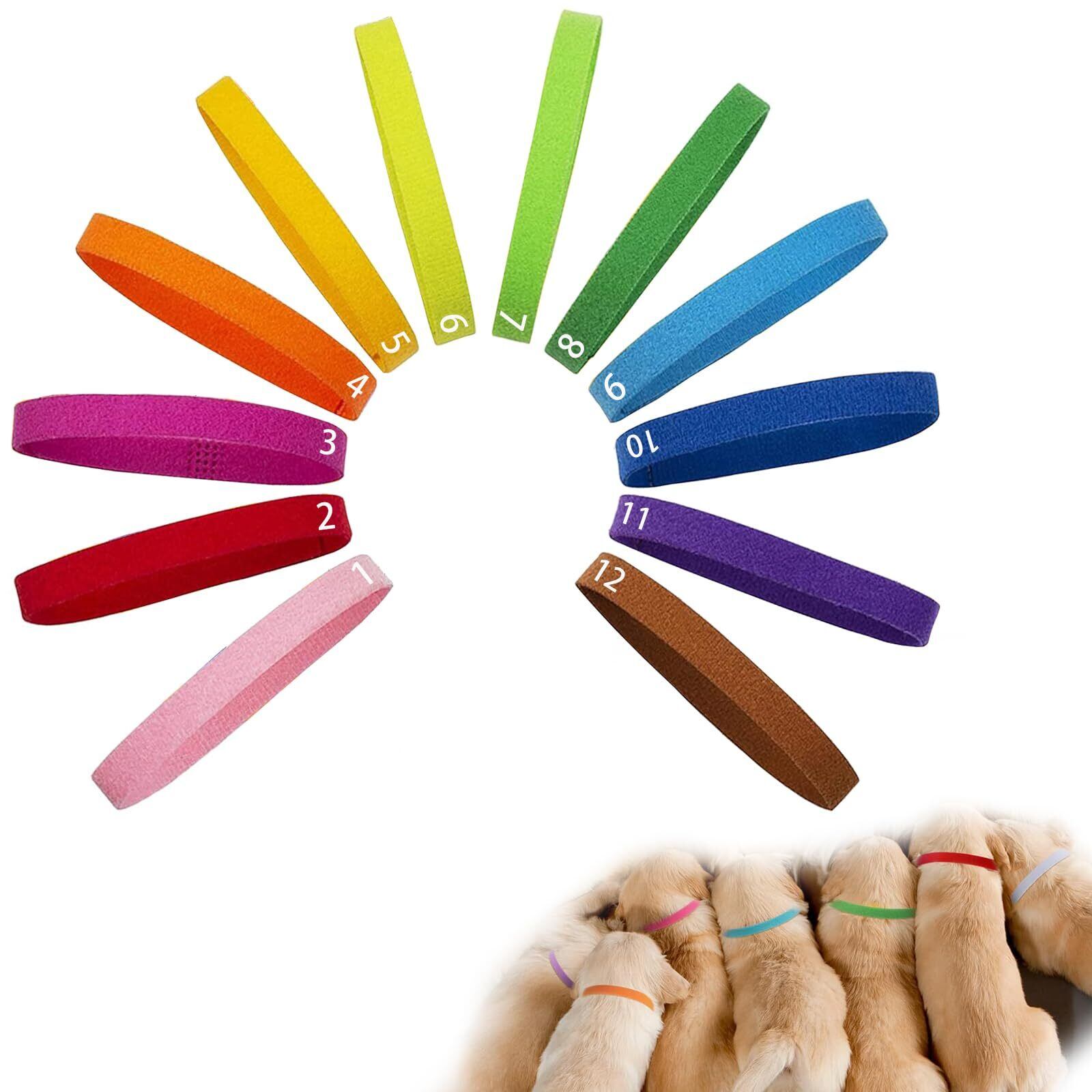【新着商品】子猫 子犬用首輪 12色セット ペット用識別首輪 1から12までの番号 新生児 ペット 子犬&子猫の識別 両面 柔軟の素材 調節可能 マジックテープ付き 簡単着脱 識別カラー | wakuwakuland