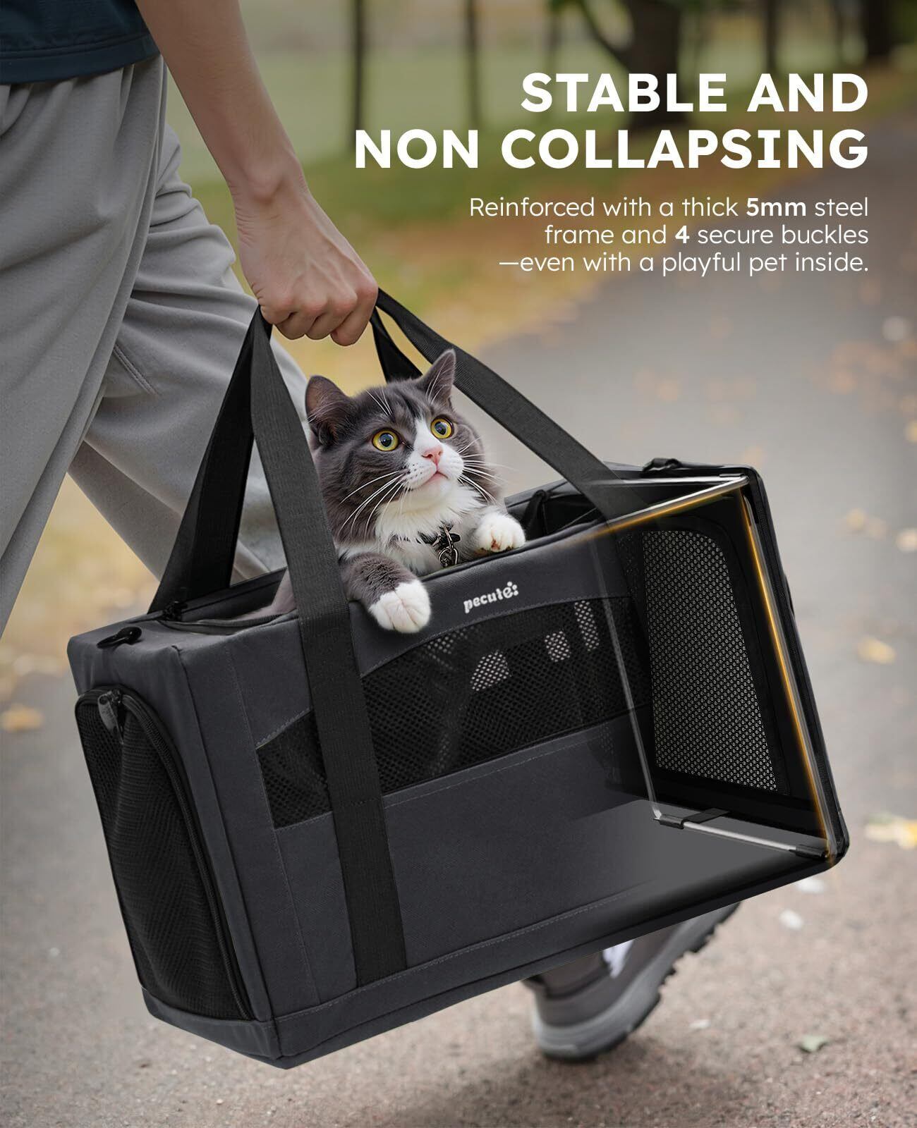 Pecute ペットキャリー 猫キャリー バッグ 手提げ 猫 キャリー ショルダー 猫 きゃりーバッグ 猫 ウサギ 小型犬 小動物用 リュック 通気性 折りたたみ お出かけ ドライブ 旅行 通院 防災 避難用 ダークグレー