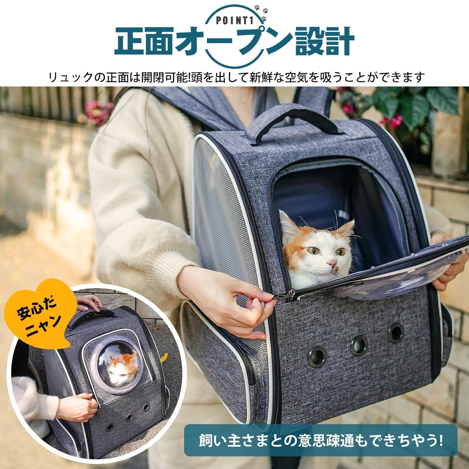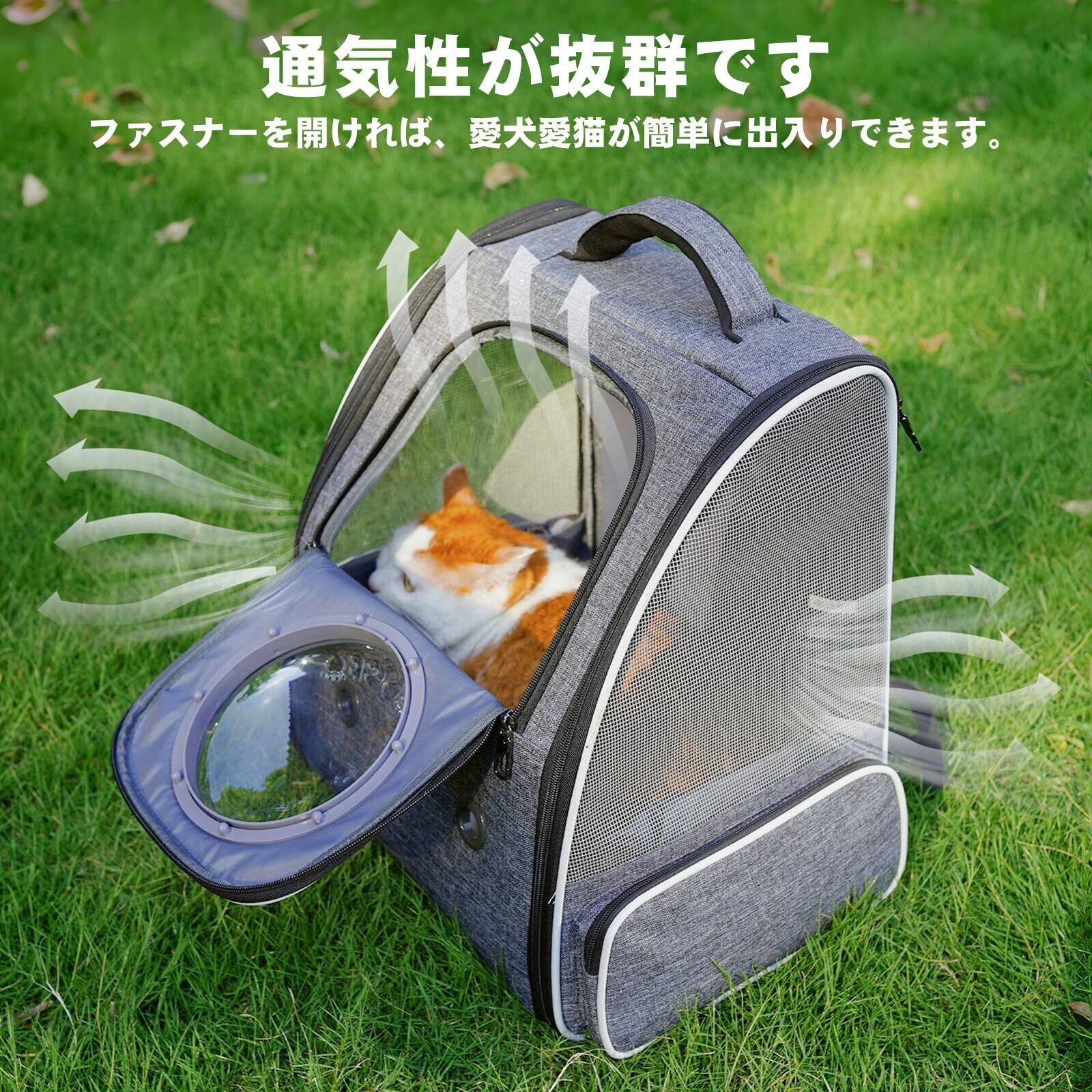 【数量限定】Okiki 最新型 猫 犬 キャリー リュック ペットキャリー バッグ カーテン付き 猫用 小型犬・小動物用 きゃりーバッグ リュック 大容量 宇宙船 折り畳み 2種類の窓付き 通気性 旅行 通院 防災 避難用最適 8KG | wakuwakuland