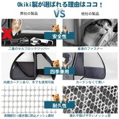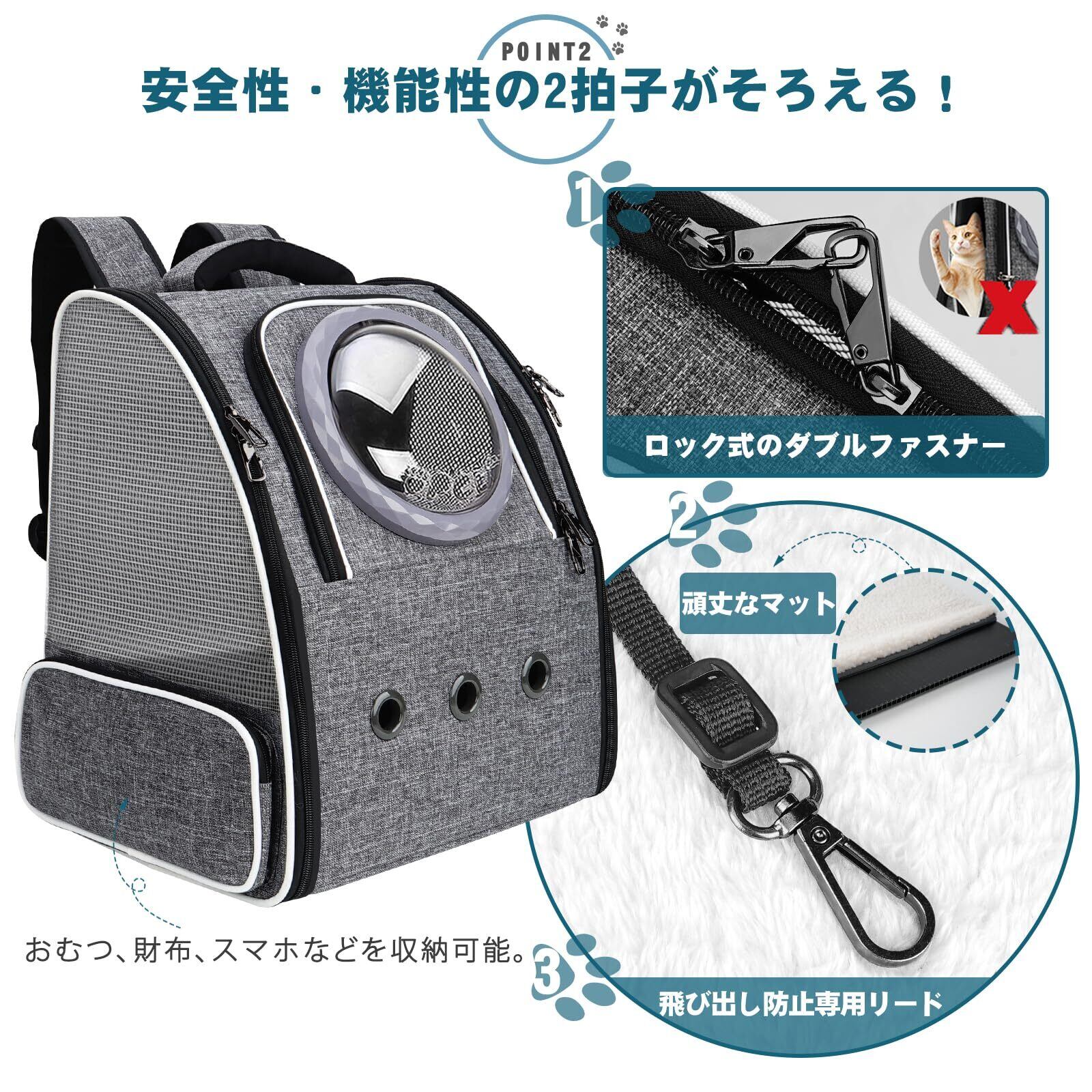 【三重安全なデザイン:ロックジッパー・飛び出しリード・PVCメッシュ窓】うちの ペットリュックに使用しているファスナーは、中から開かないロックジッパーを採用しているので、やんちゃなペットでもご安心ください。内部にペットが急に飛び出すことを防ぐためにペットと接続できるバックルも付き、安全性すごく良いです。メッシュ窓に頑丈なPVC素材を採用していますので摩耗と噛むに耐えます。ペットが暴れられる時にも使用可能ですがご安心ください。