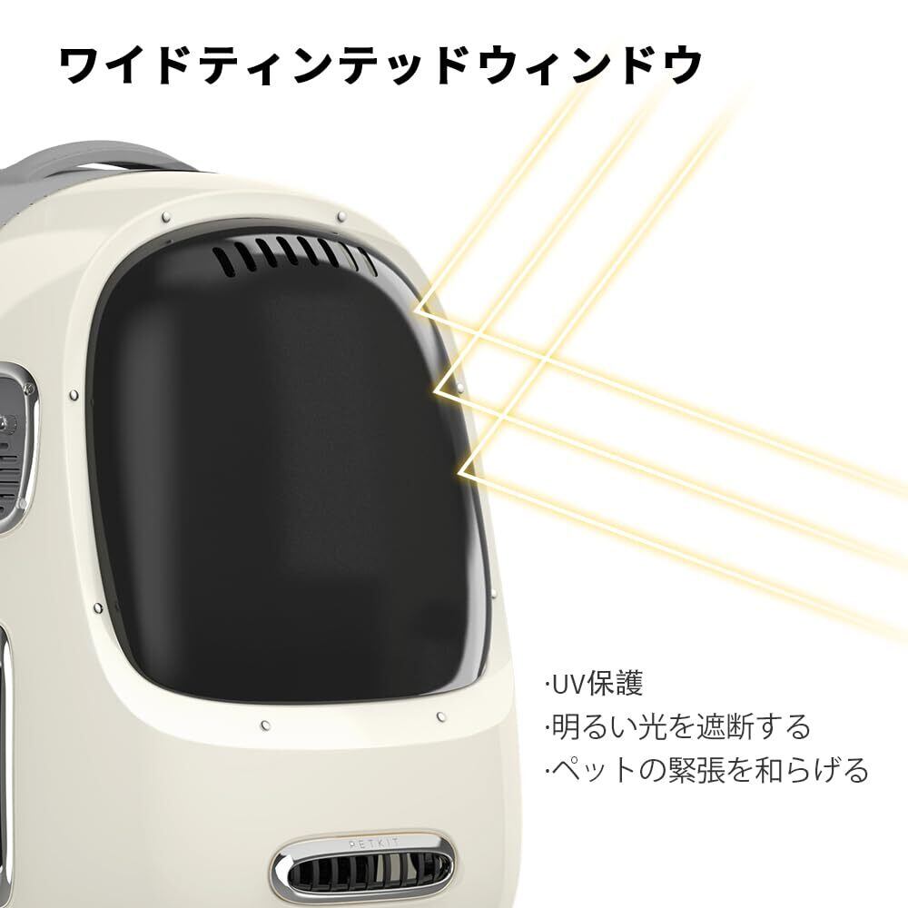 PETKIT猫用キャリーバッグ ペット 通気性 飛び出し防止機能を備え 内蔵ライト 人間工学に基づいた設計 お出かけバック 通院 散歩 旅行 小型犬用 軽量 (クリームホワイト)