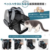 【大空間ハウス型リュック・拡張機能】背面のファスナーを開けると広々メッシュハウスに拡張可能!室内ではペットハウスとして、外出時はリュックとして2WAY使用が可能。側面の開放窓で2カ所の出入り口を確保し、猫や小型犬が自由に動き回れる快適空間を実現。防災避難時や旅行にも最適な多機能デザインです。
