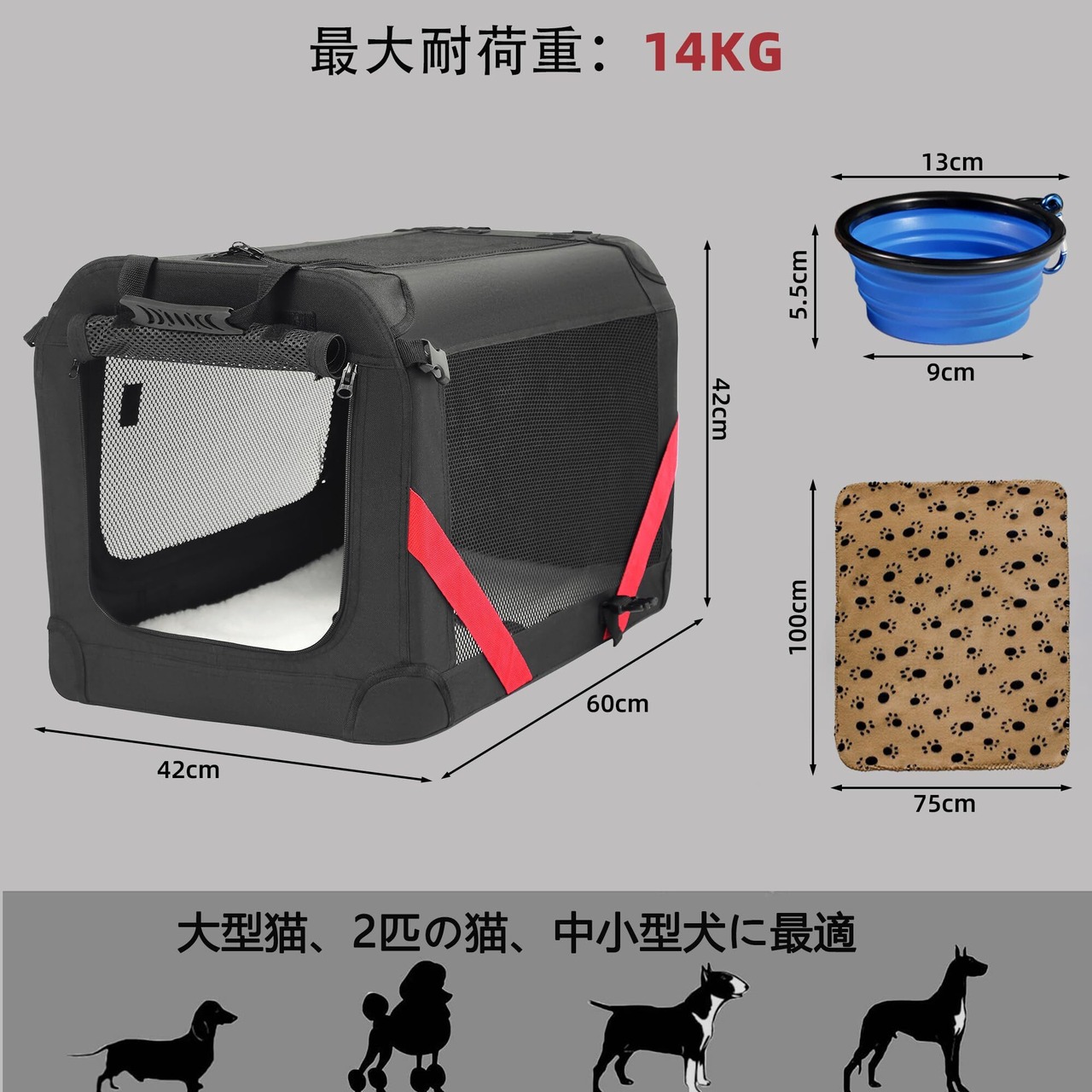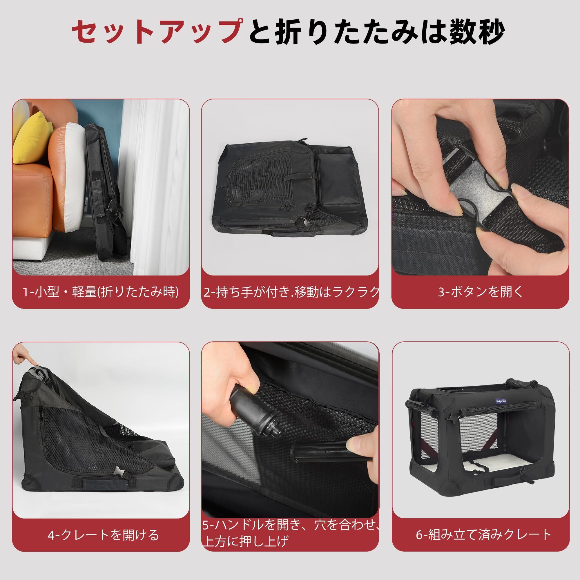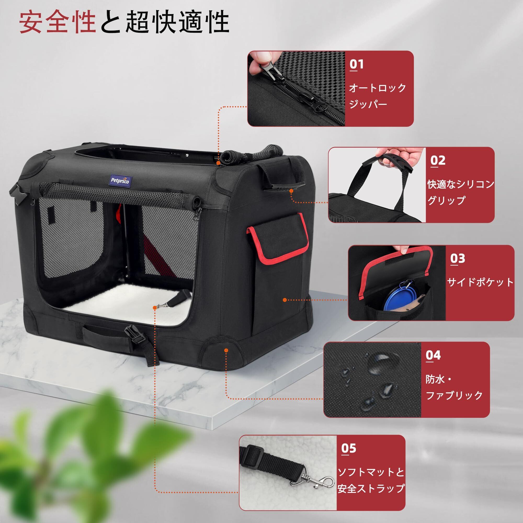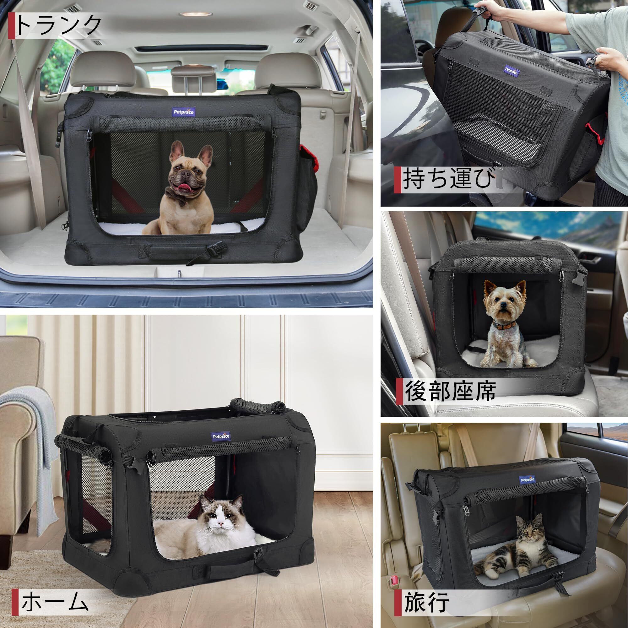 多機能で旅行に便利: 家でのペットケージや車のカーシートとしても使用でき、SUVなどのトランクにも適しています。ペットを楽しい旅行に連れて行ったり、病院への移動を簡単に行えます。