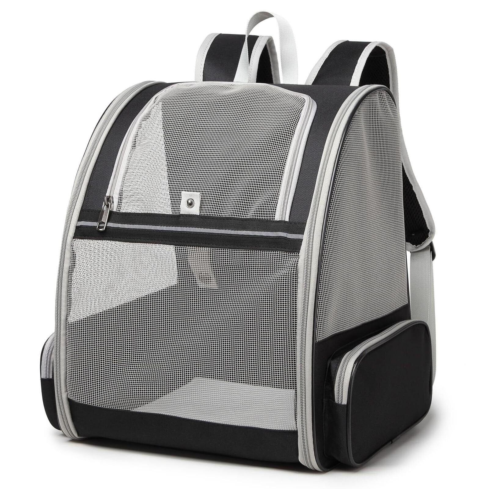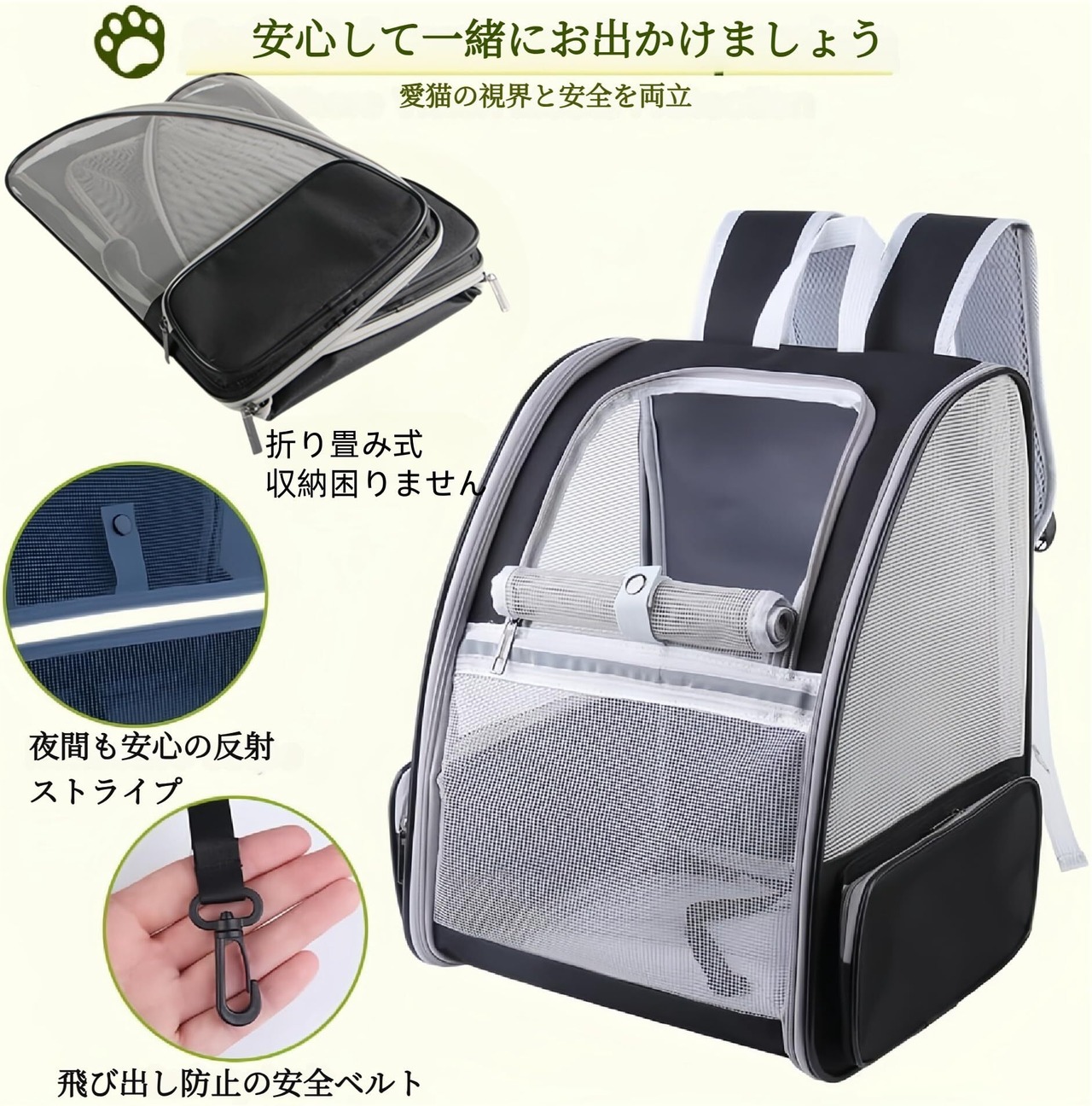 【特価セール】SunStarsPets 猫 キャリーバッグ 折りたたみ式 ペットキャリー 小型犬・猫用 リュックサック型 メッシュ窓で通気性 飛び出し防止&反射ストライプ付き のぞき窓で安心設計 旅行/外出/通院/キャンプ/災害避難用 (黒) | wakuwakuland