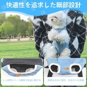 【通気性抜群・快適な着用感】背面と両サイドにメッシュ素材を全面採用し、通気性が良くムレにくい構造。まるでベストのようにぴったりフィットし、夏場でもペットが快適に過ごせます。ペットの顔・手・足・しっぽを出せる開口部付きで、より自然な姿勢で安心。