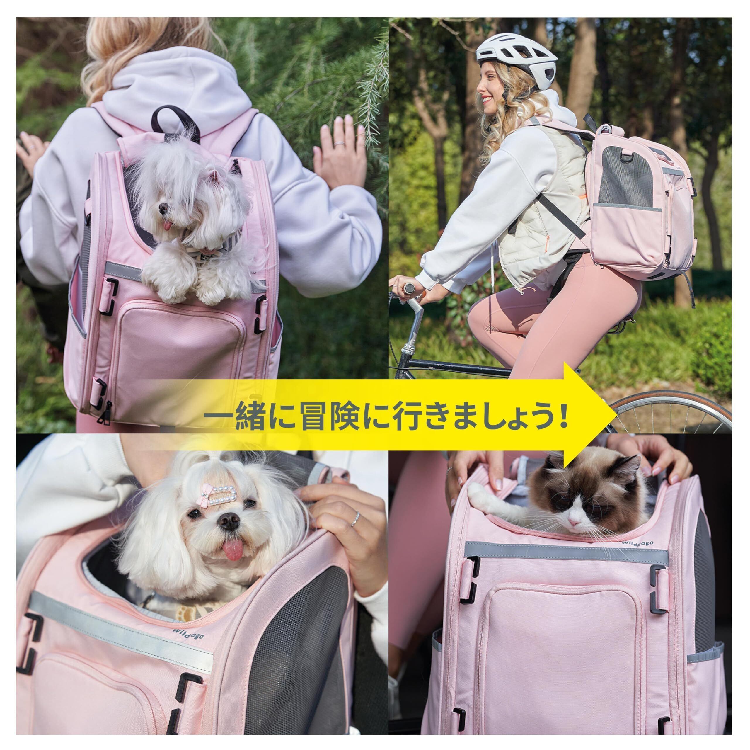 【2022最新】Wildgogo 拡張式ペットキャリー 折りたたみ可 着脱式リュック対応 小型犬・猫用(6kg以下) 飛び出し防止 通気性メッシュ 車載可 旅行/避難/アウトドアに最適 (ピンク) | wakuwakuland
