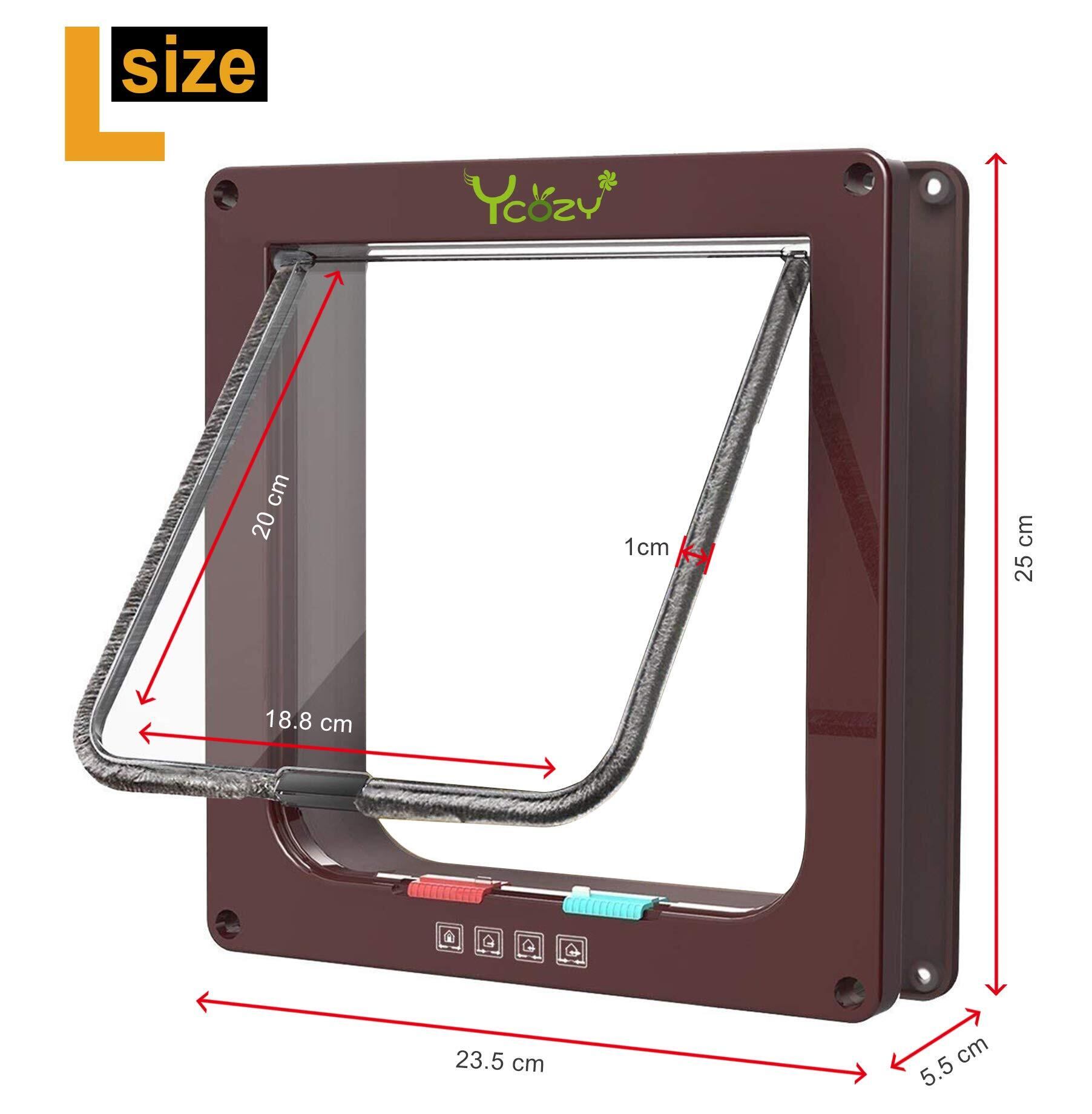 Ycozy ペットドア 外寸25.2×23.7cm 猫 出入り口 小型犬用 ドア 猫扉 4-way切替 ロック キャットドア 室内用 取り付け簡単 冷暖房対策