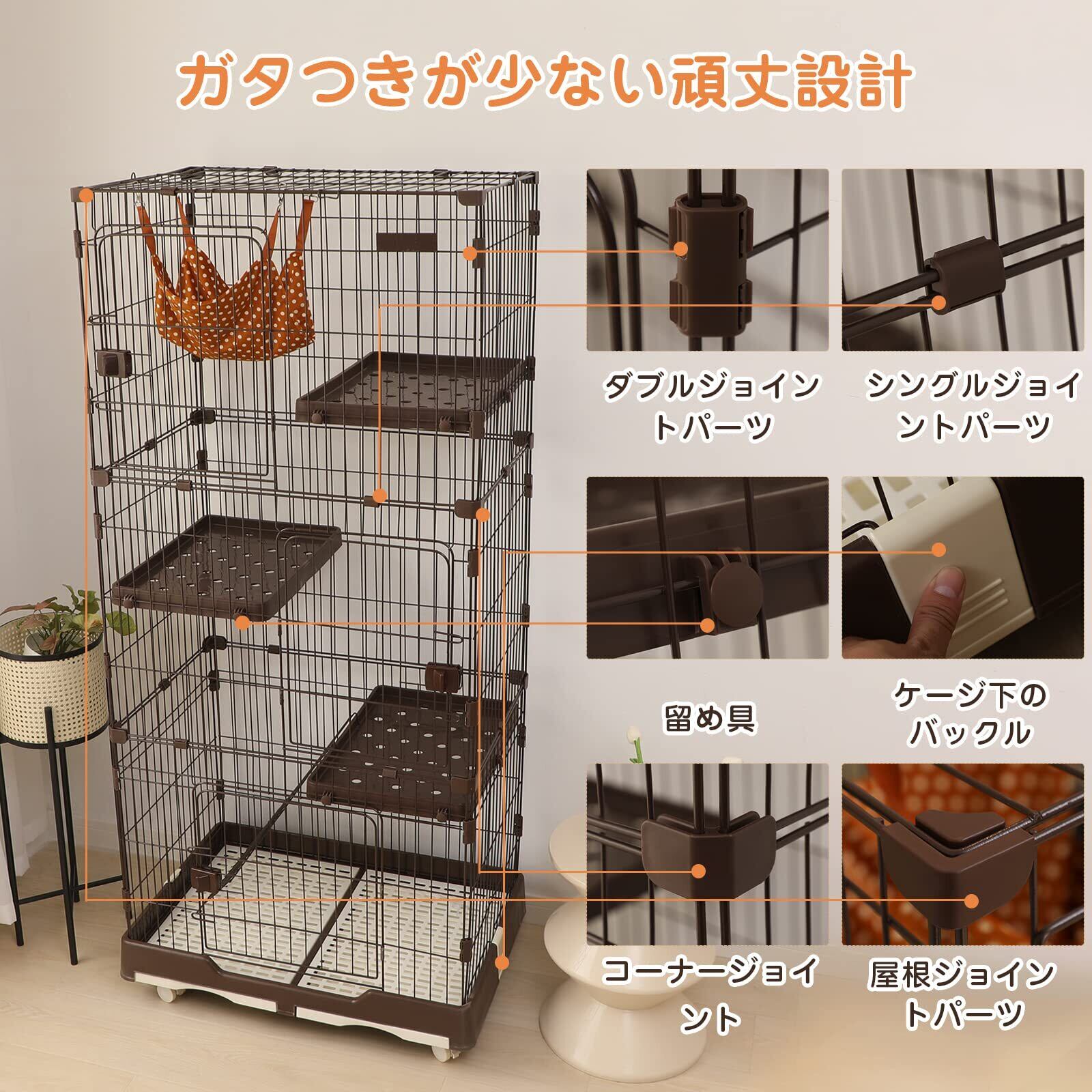 【新着商品】PETTOM 猫ケージ キャットケージ 幅82cm 2/3段 ペット 猫 キャットゲージ キャット タワー 収納 キャスター 付 脱走防止扉 頑丈 檻 ねこ ネコケージ コンパクト ハンモック 多頭飼い (三段(82*57*179CM)) | wakuwakuland
