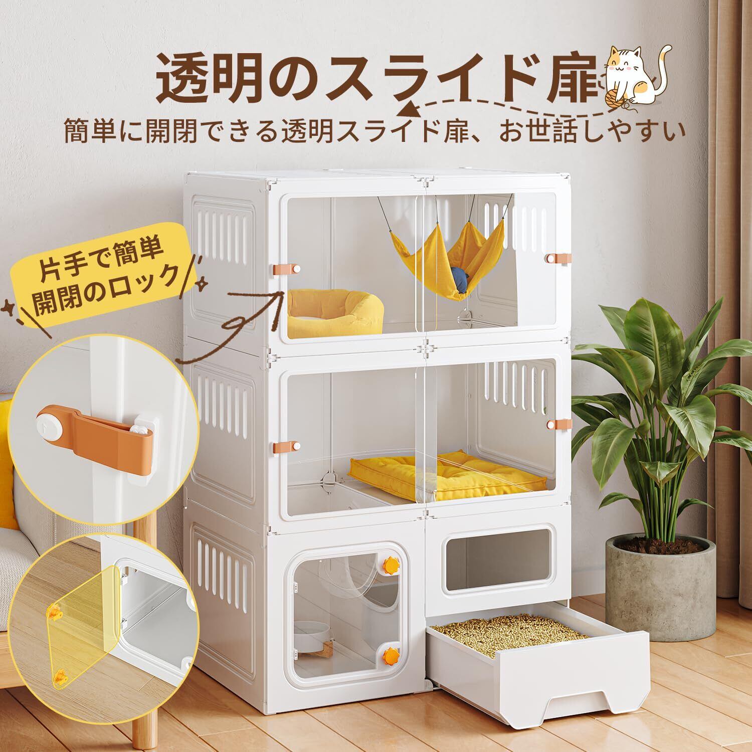 【トイレ付きの猫 ケージ】猫ケージとトイレを一体化にします。引き出し設計で、引き出すだけで排泄物を取り除き、ケージを開けずに掃除でき、面倒なトイレの掃除は簡単になりました。猫ちゃんが快適に過ごせます。
