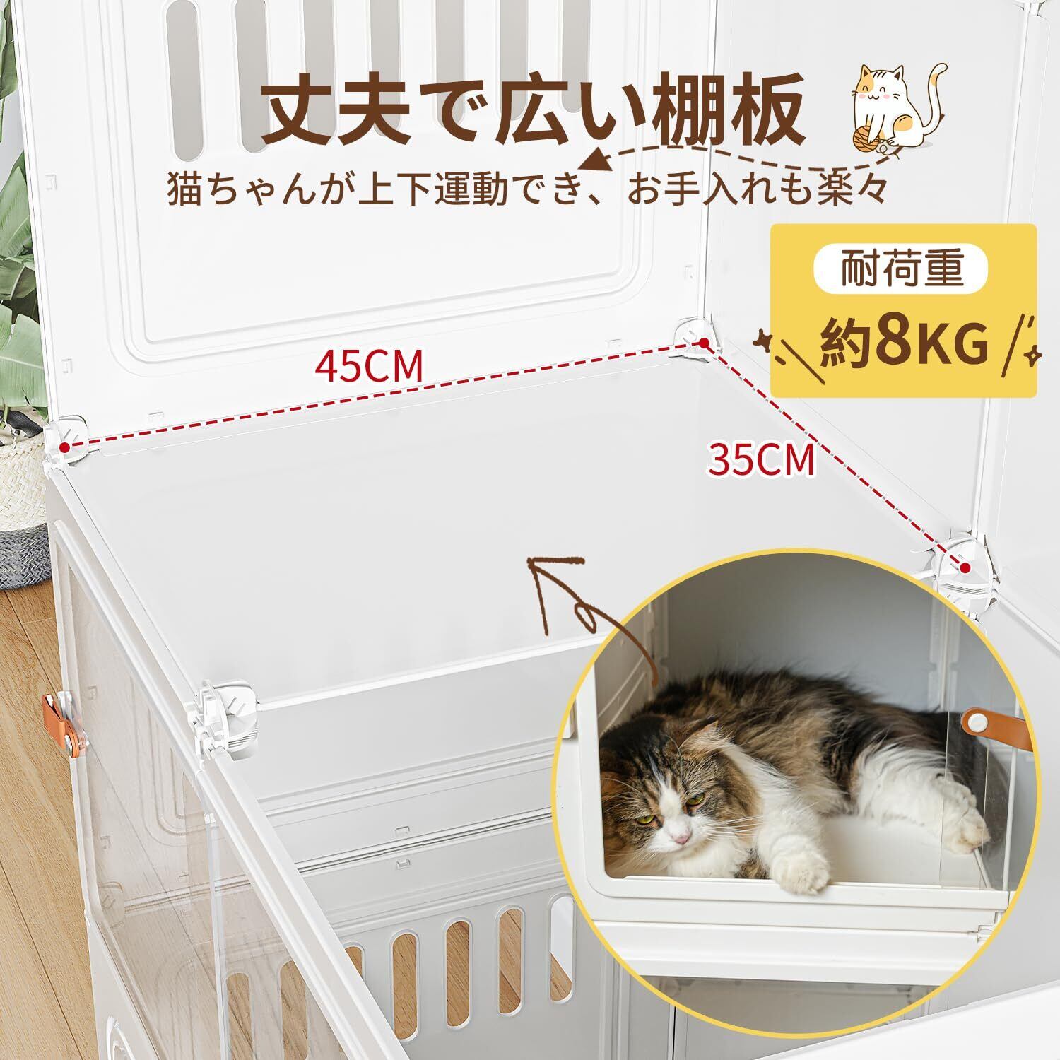 【数量限定】Topzoo 猫 ケージ トイレ付き 2段 トイレ一体型 防臭 飛散軽減 透明引き戸 幅70×奥行き45×高さ105cm キャットケージ 猫用ケージ 子猫 スリム おしゃれ スコップ付き クリア コンパクト 脱走防止 日本語説明書付き ホワイト | wakuwakuland