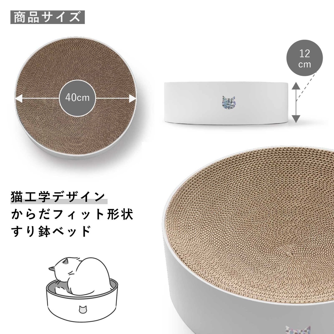 優しいカーブのすり鉢構造が、猫のからだにぴたりとフィット