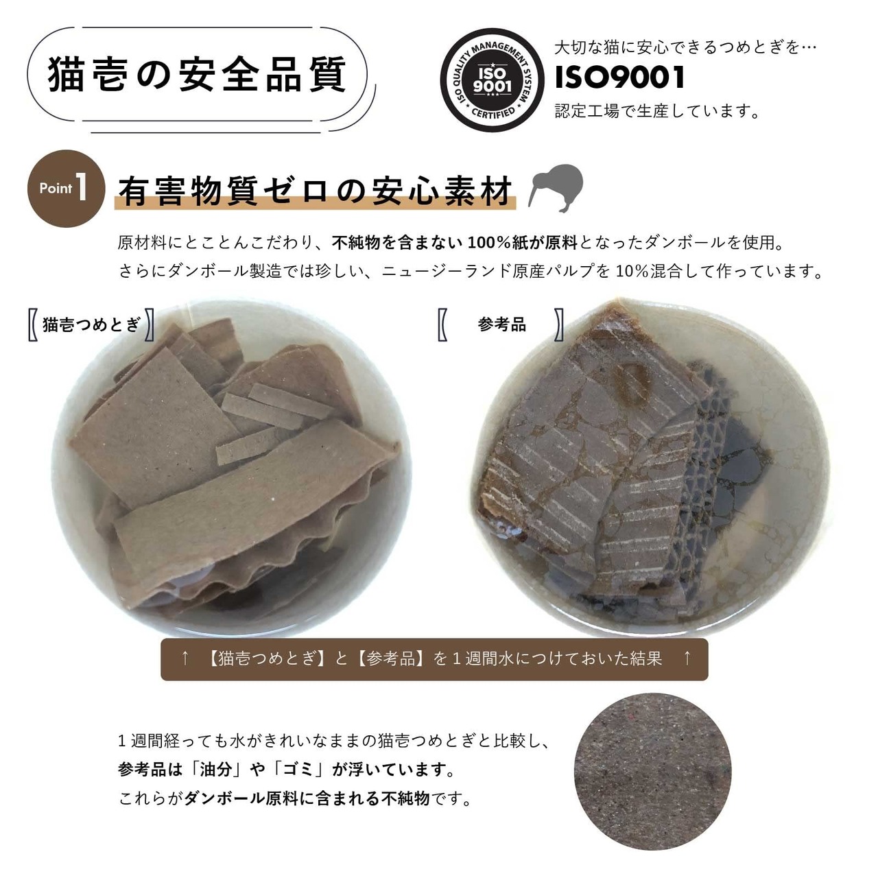 猫がつめとぎをした後、手や肉球をなめても心配がないよう、ダンボールを貼り合わせる際に使用している糊は、とうもろこしを主原料とした植物由来の糊を使用しています。