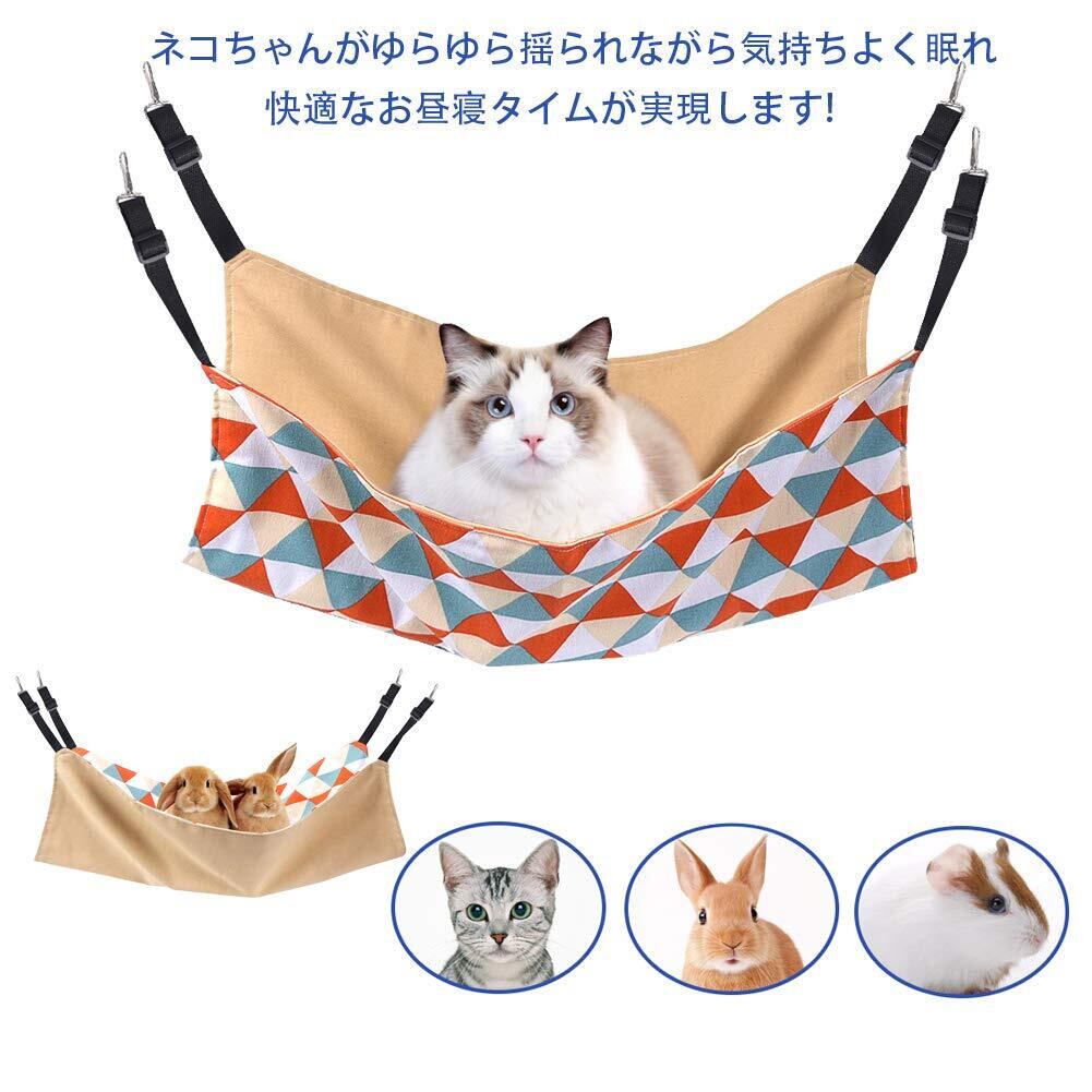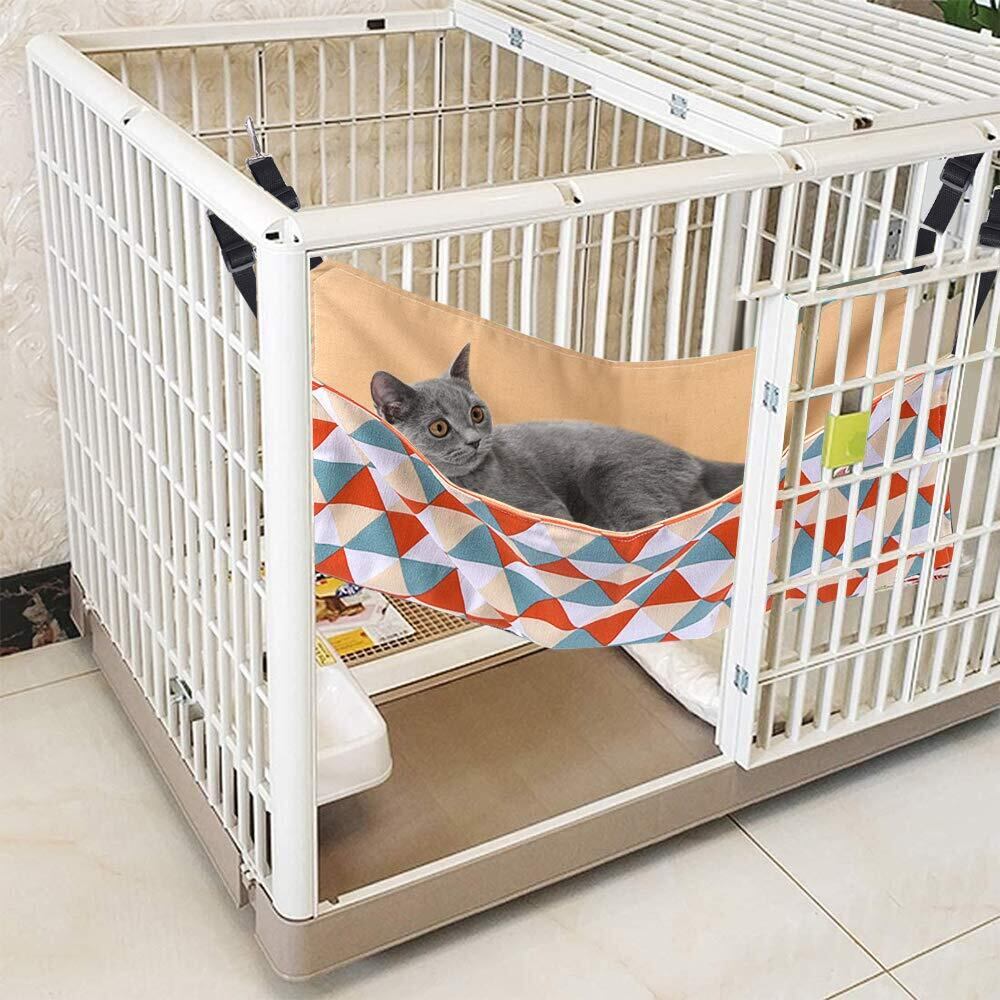【在庫処分】猫 ハンモック Blueekin キャットハンモック ヒモ調整可能 ポリエステル 56cm x 46cm 耐荷重10KG 大きい ペット ベッド ねこハンモック ケージ用 通気性 日向ぼっこ 遊び場 金具丈夫 丸洗い 夏冬両用(三角) | wakuwakuland