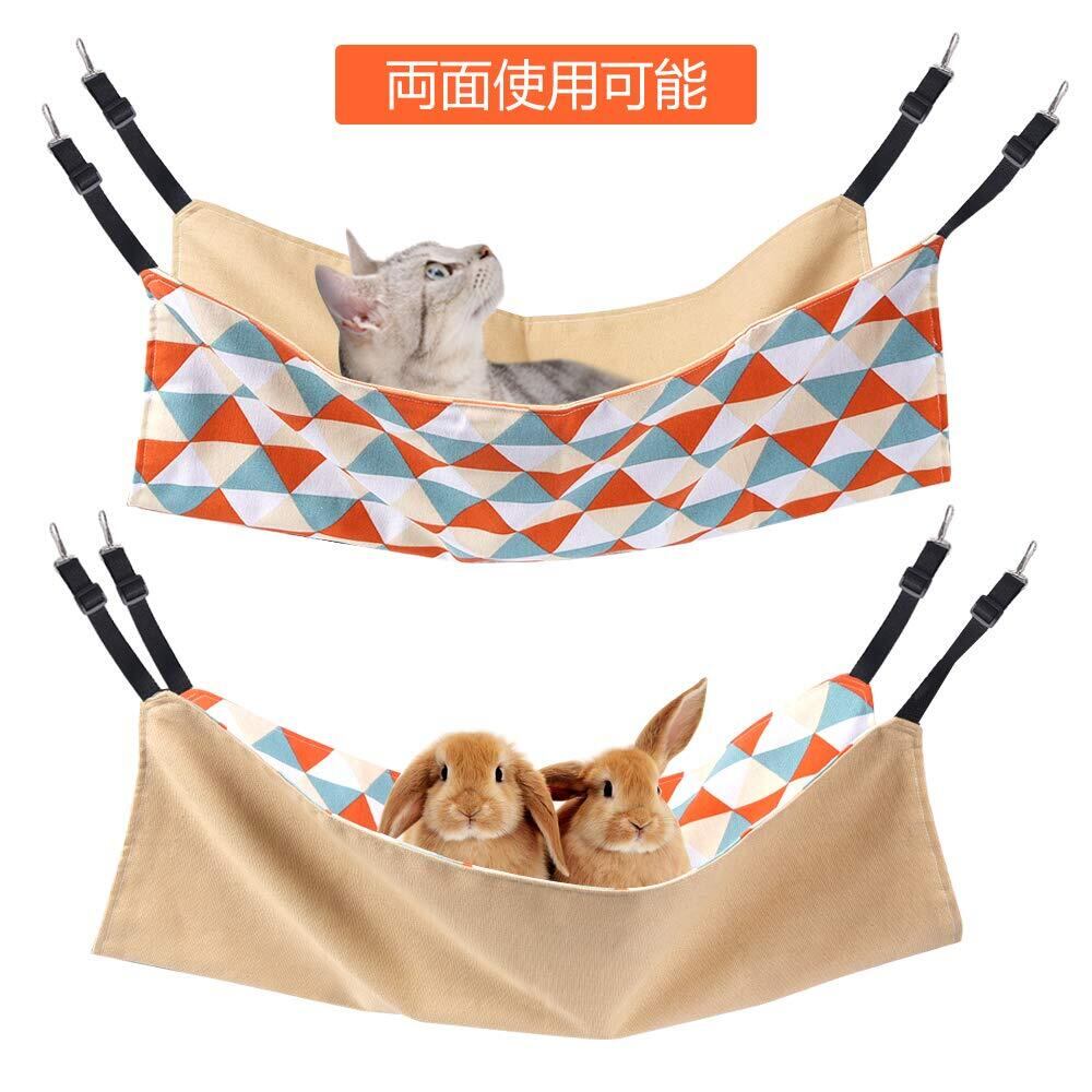 【猫ハンモックケージ用】ケージに取付け可能な猫用ハンモック。ハンモック部分はリバーシブルなので、気分に合わせて変えることができます。猫ハンモックのサイズ:56cm x 46cm,適応体重は10kgまでなので、普通サイズの猫ちゃんなら十分使用可能です。