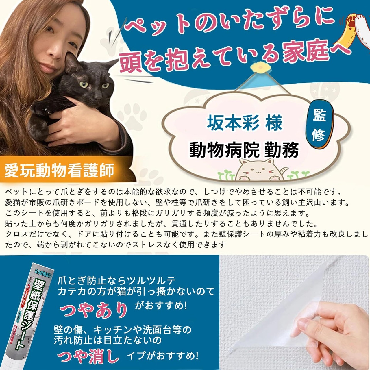 BOOMAGU 【獣医師監修】はがせる 猫 壁紙保護シート 半透明 猫 つめとぎ 防止 シート 貼りやすい 爪研ぎ防止シート 使いやすい 目立ちにくい汚れ防止 猫ひっかき防止 (30CM*2.5M)