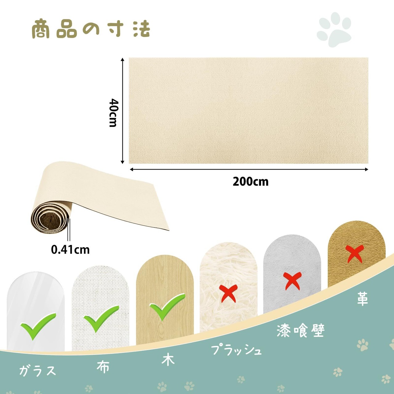 【在庫セール】Pawaboo 猫 爪研ぎ 猫 爪研ぎ防止シート 猫用爪とぎマット つめとぎ 爪研ぎ 40×200cm 猫 つめとぎポールリペア キャットタワーリペア カーペット 自由にカットできる 壁に貼る 幅40cm ソファー保護 床保護 壁保護 剥がせる ロール 家具保護 インテリアに馴染む Offwhite | wakuwakuland