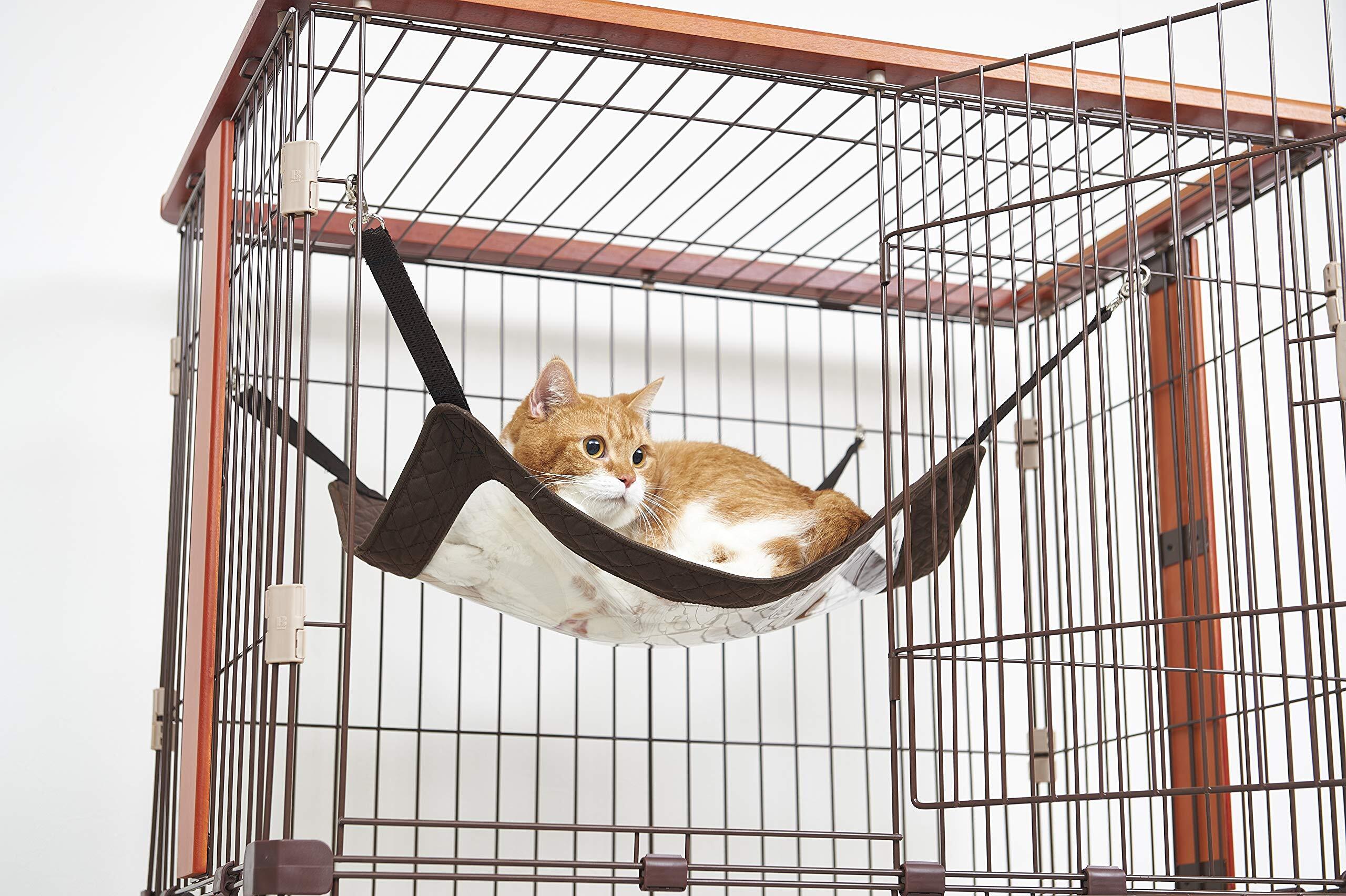 新感覚のサークルに取り付ける透明ハンモック! 肉球もばっちり!
