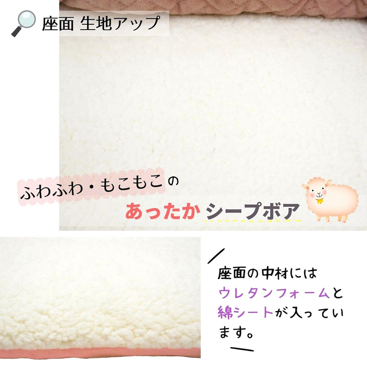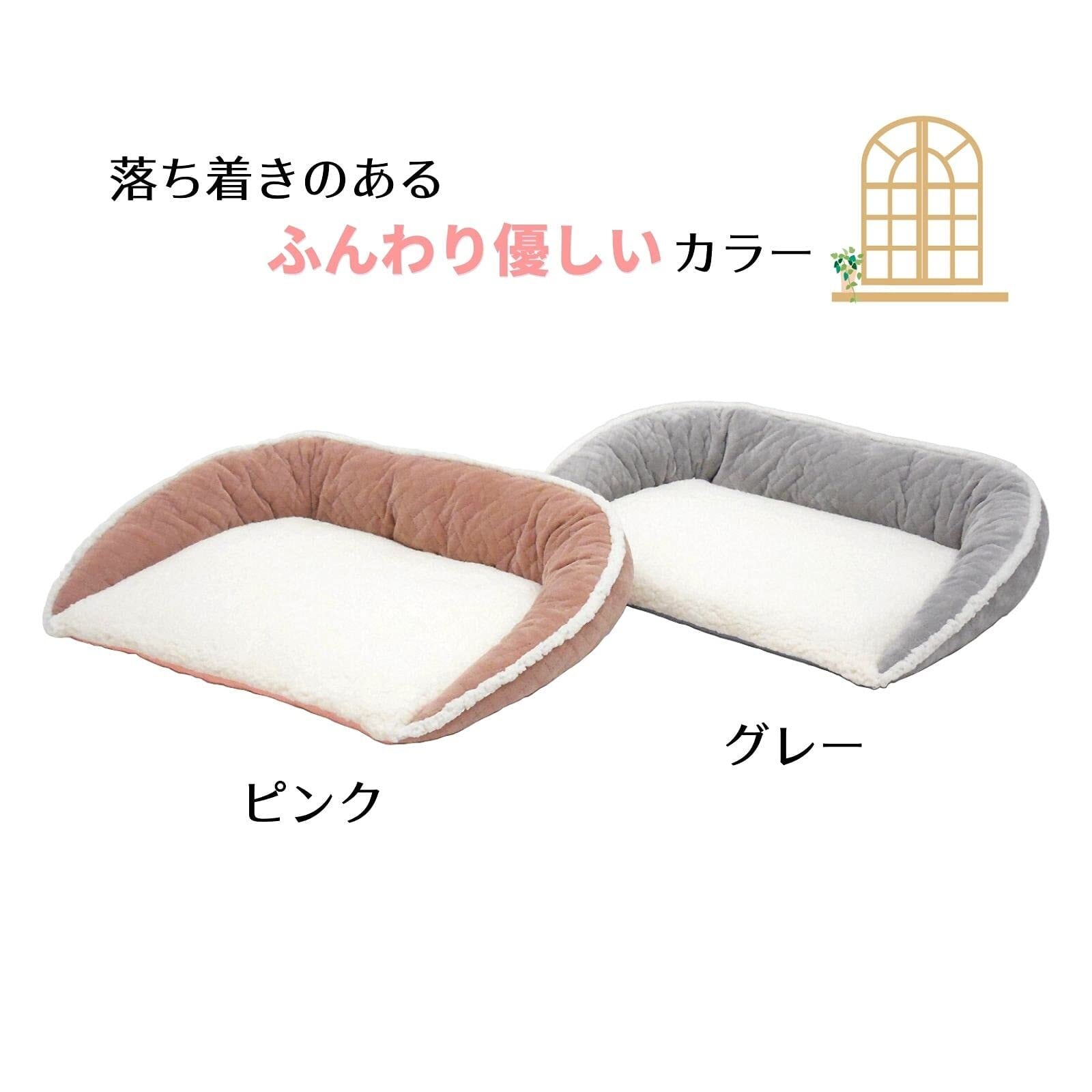 スタイリア発『オープンベッド』の秋冬用。 ふんわり『ハーフmoon』が、可愛くお休みタイムに誘います 段差が少なく、入口が広い『フラットマット座面』は、つまづきにくく、自力で乗り降りしやすい形。 シニアや小型・足の短い子ちゃん達にも、優しい仕様です。 ウレタンフォームを中材に使用した座面生地には、ふわふわ・もこもこの『あったかシープボア』を使用。 秋から春まで、長く暖かく過ごせます。 外周部には、なめらかで暖かな肌触りの『マイクロファイバー生地』を使用。 中綿が程よく入っているので、枕のように「あごのせ」や「体」をそっと暖かく支えてくれます。 手洗いも可能。
