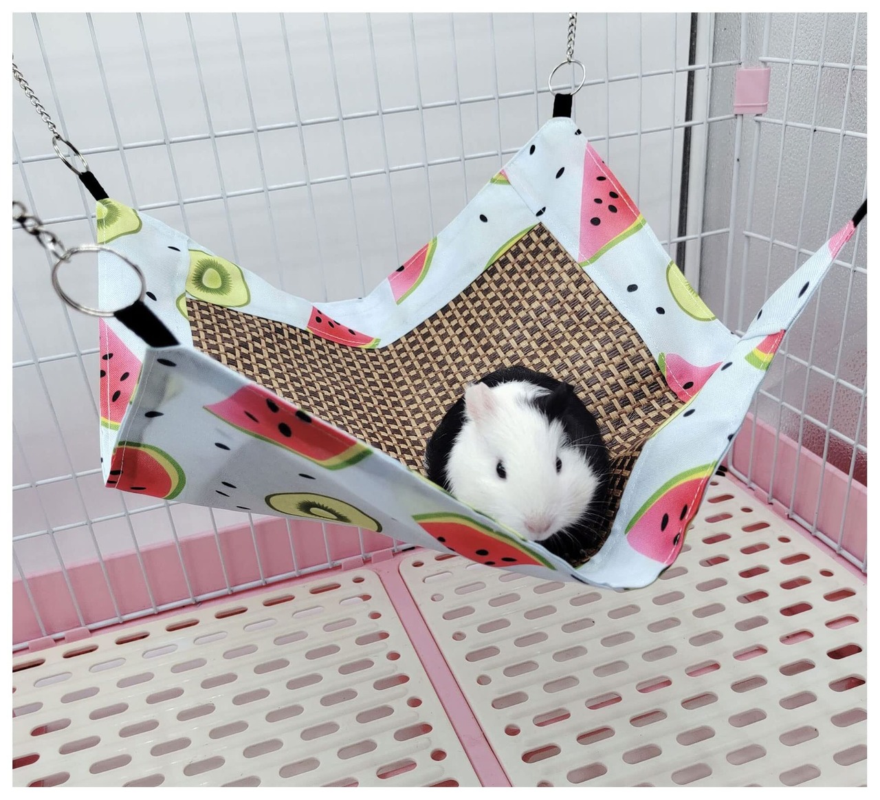 【在庫セール】ふく福 涼しい ハムスター ハンモック ペット 猫用 ハンモック 通気性小動物 寝床 うさぎ ひんやり マット シート飼育ケージ内装 金具付 ハムスター チンチラ モルモット夏 熱中症対策 35*35cm (ランダムカラー,一つ) | wakuwakuland