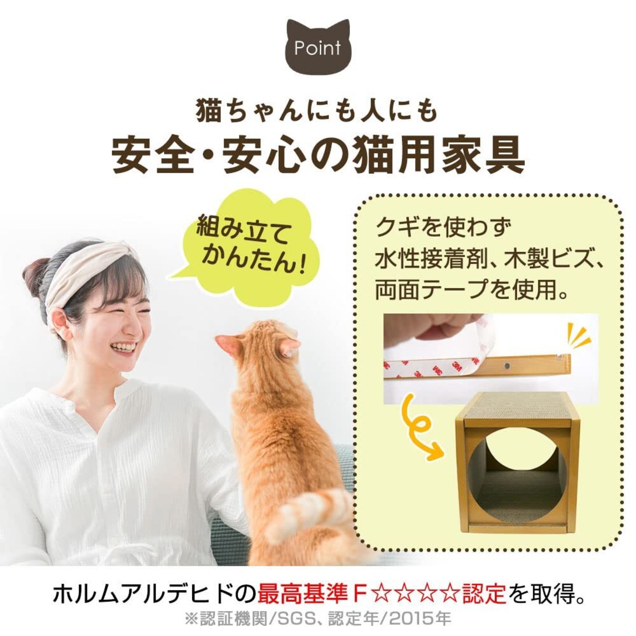 使用上の注意:・本製品は猫専用です。本来の用途以外には使用にならないでください。・無理な力をかけると破損するおそれがありますのでご注意ください。・火気や水気のあるところでの使用はしないでください。・人が乗ったり本製品の上に重たいものなどを乗せないでください。破損の原因になります。・高いところ、不安定な場所に設置しないでください。直射日光が当たる場所や、高温、多湿になる場所での設置はしないでください。