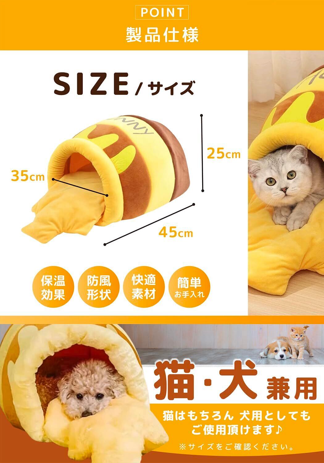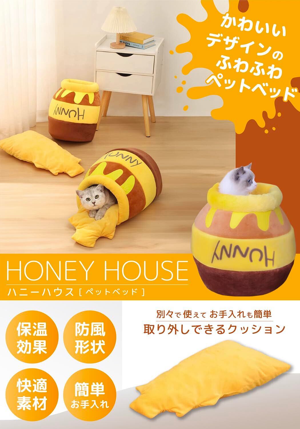 1.かわいいデザインのペットベッド はちみつ壺をモチーフにしたユニークで可愛らしいデザインのペットベッド。お部屋のインテリアとしても映える、猫や小型犬にぴったりのアイテムです!