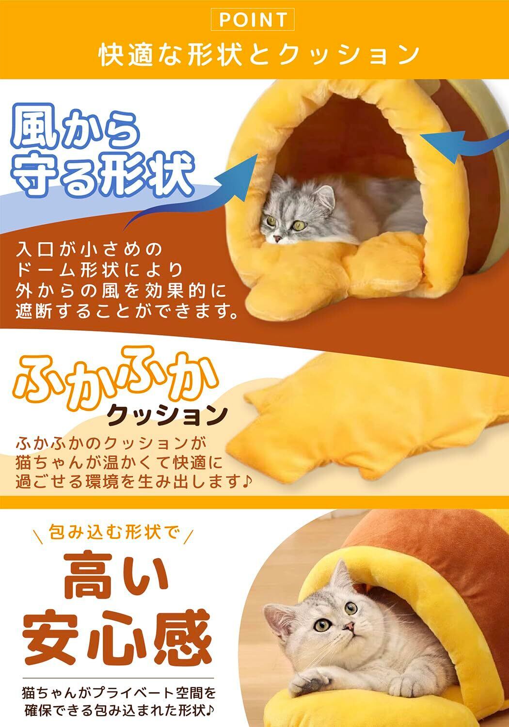 3.保温&防風効果で暖かさアップ しっかりと包み込む構造で風を防ぎ、保温効果も抜群。冬場の寒さ対策に最適で、ペットが安心して眠れる環境を作ります。