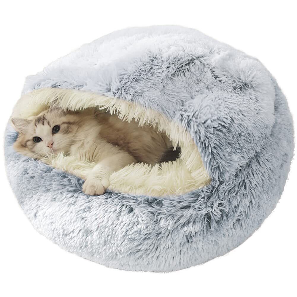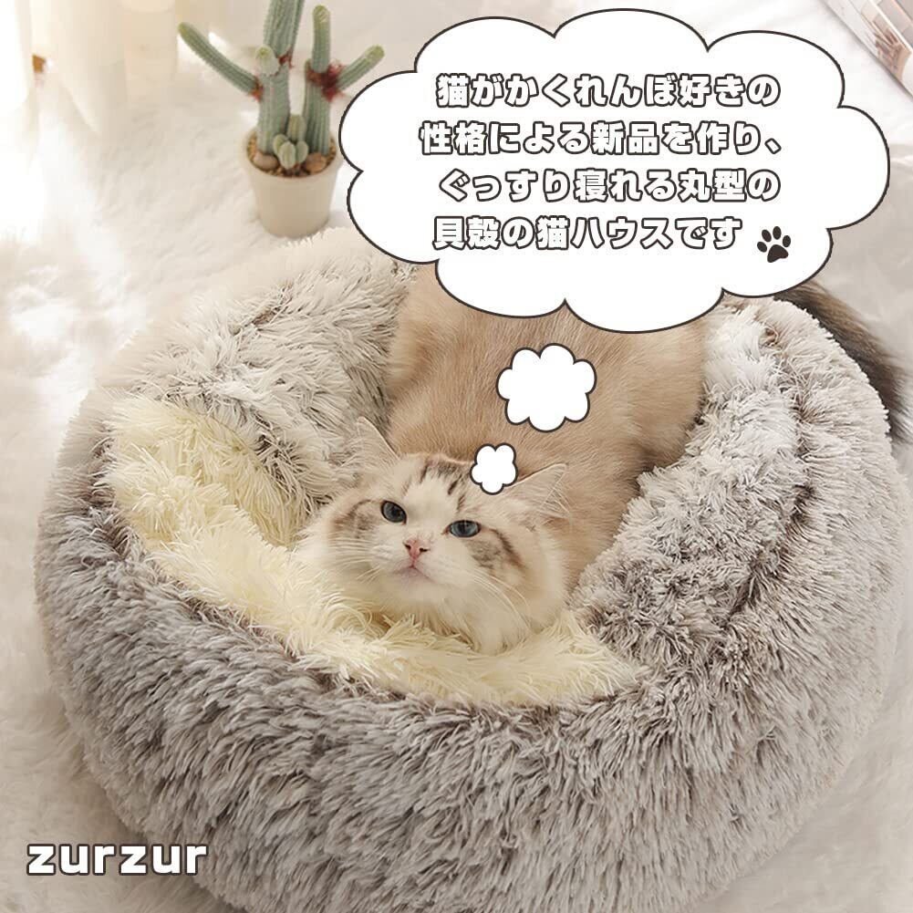 zurzur 猫 ベッド ハウス ドーム型 暖か 丸型 ふわふわ もこもこ 可愛い ぐっすり眠る 柔か 保温 ペット クッション 滑り止め 洗える 小型 犬用 子猫 ペット用品 防寒対策 通年