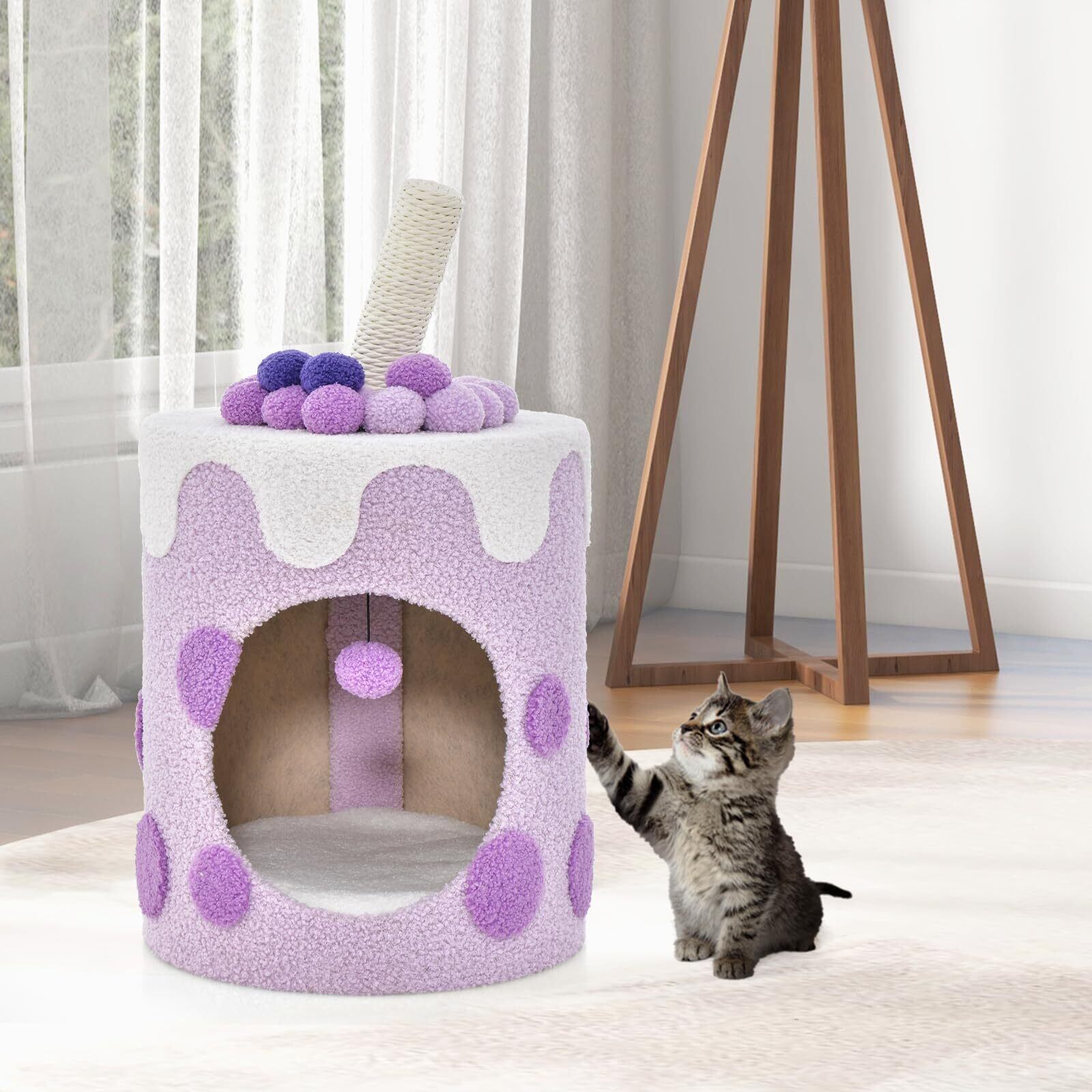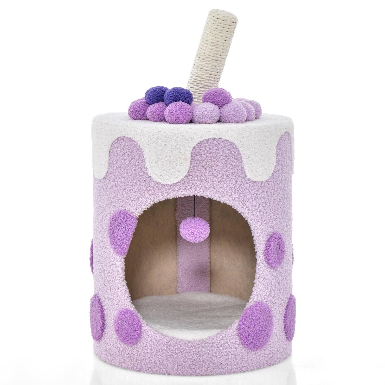 GOPLUS 高さ67cm 猫ハウス ネコハウス ミルクティー仕様 キャットハウス クッション付き 可愛い 猫部屋 ねこハウス 室内用 組み立て簡単 猫用品 パープル