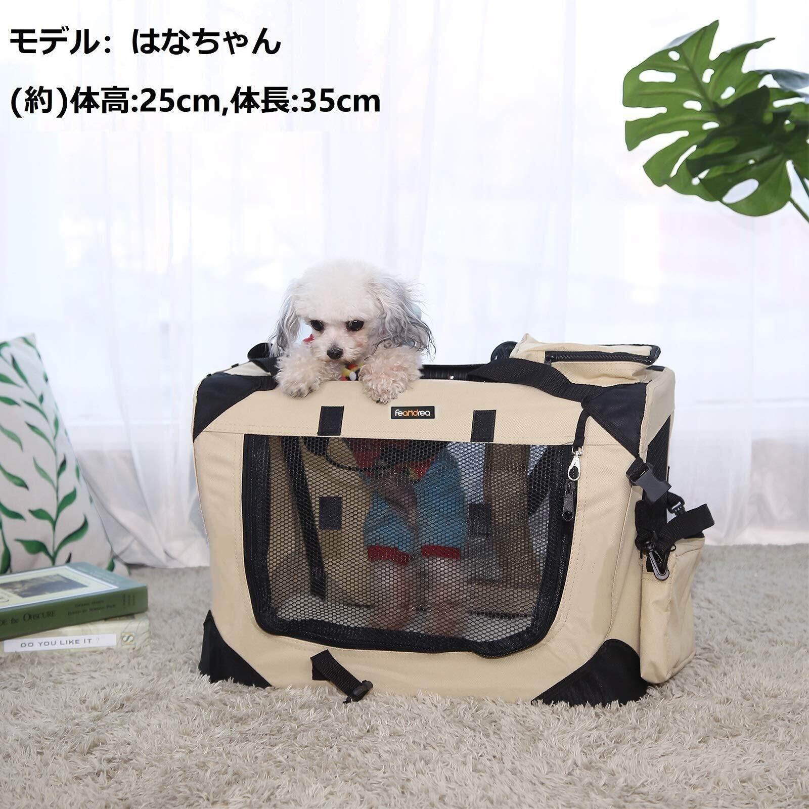 FEANDREA ペットキャリー 犬 猫 キャリーバッグ キャリーケース 折りたたみ 50×35×35cm ベージュ NPDC50W