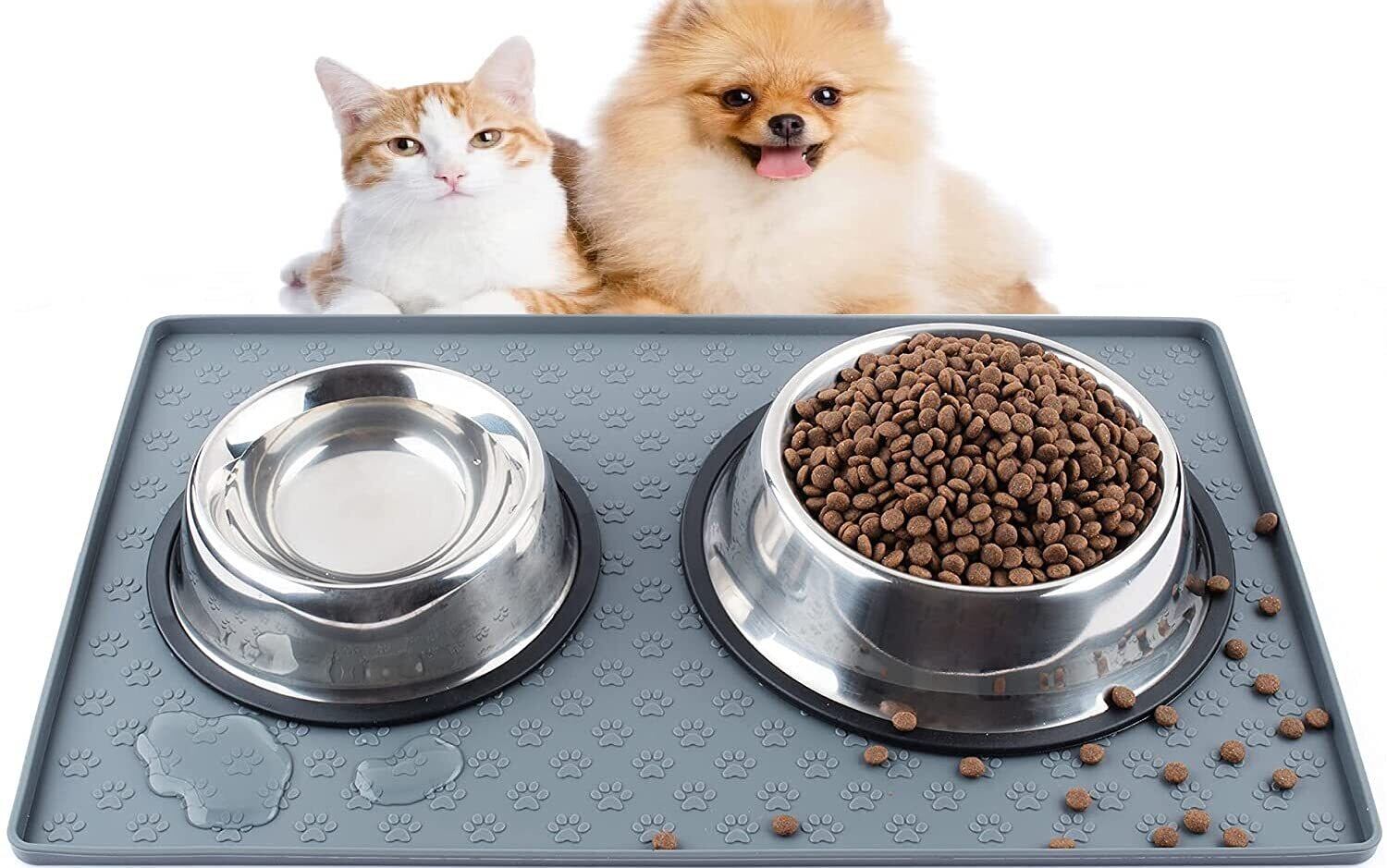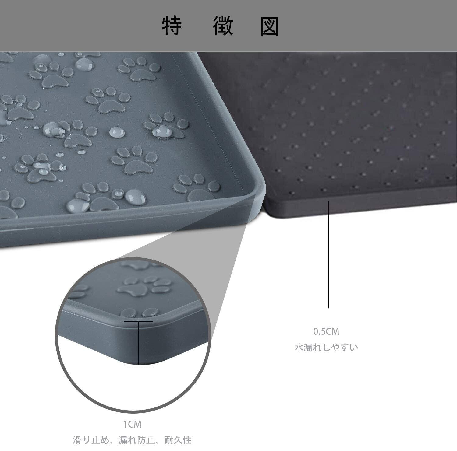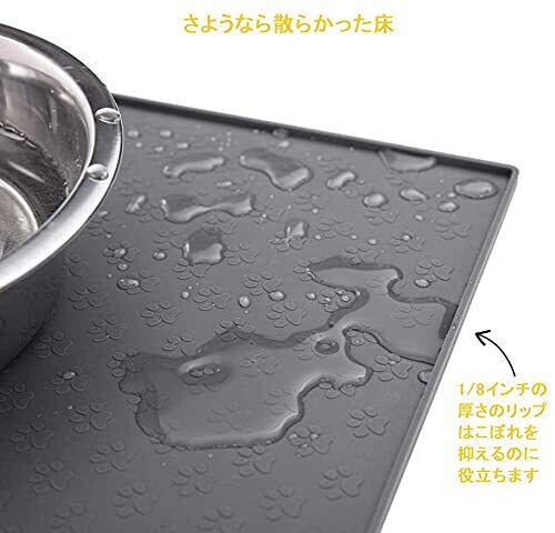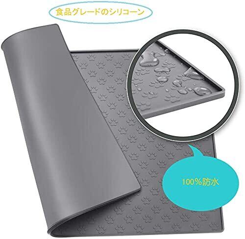 ペット 食事マット 猫 食事マット 犬 食事マット シリコン製 ペットマット 給餌マット 猫砂マット トイレトレーマット 滑り止め 溢れ止め 撥水 防水 防汚 丸洗い (48x30cm, グレー)