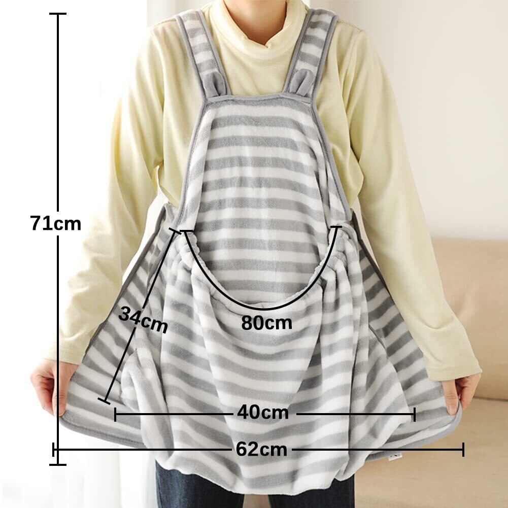 【慣れやすい安定感】飼い主さんと密着出来て落ち着きやすい!もふもふサンゴフリース生地を用いたエプロン型猫抱っこ紐、大好きな飼い主さんに抱っこされて寒い日も暖かく過ごせます!前抱っこ仕様のスリングだから、飼い主さんの体温や声が伝わってお互いに姿が見えるので安心感が高まるペットベッドです