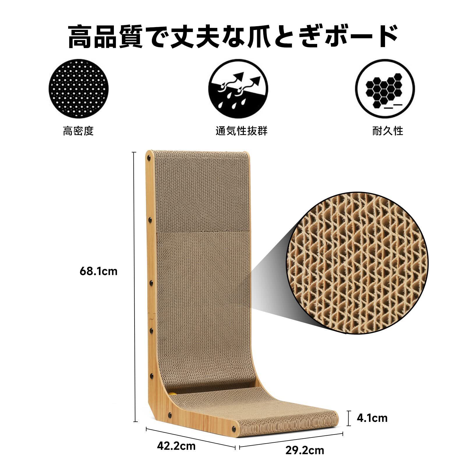 FUKUMARU 猫用L字型スクラッチャー 猫 猫用 爪とぎ 爪研ぎ ダンボール 段ボール おもちゃ付き 42.2*29.2*68.1cm(縦*横*高さ)