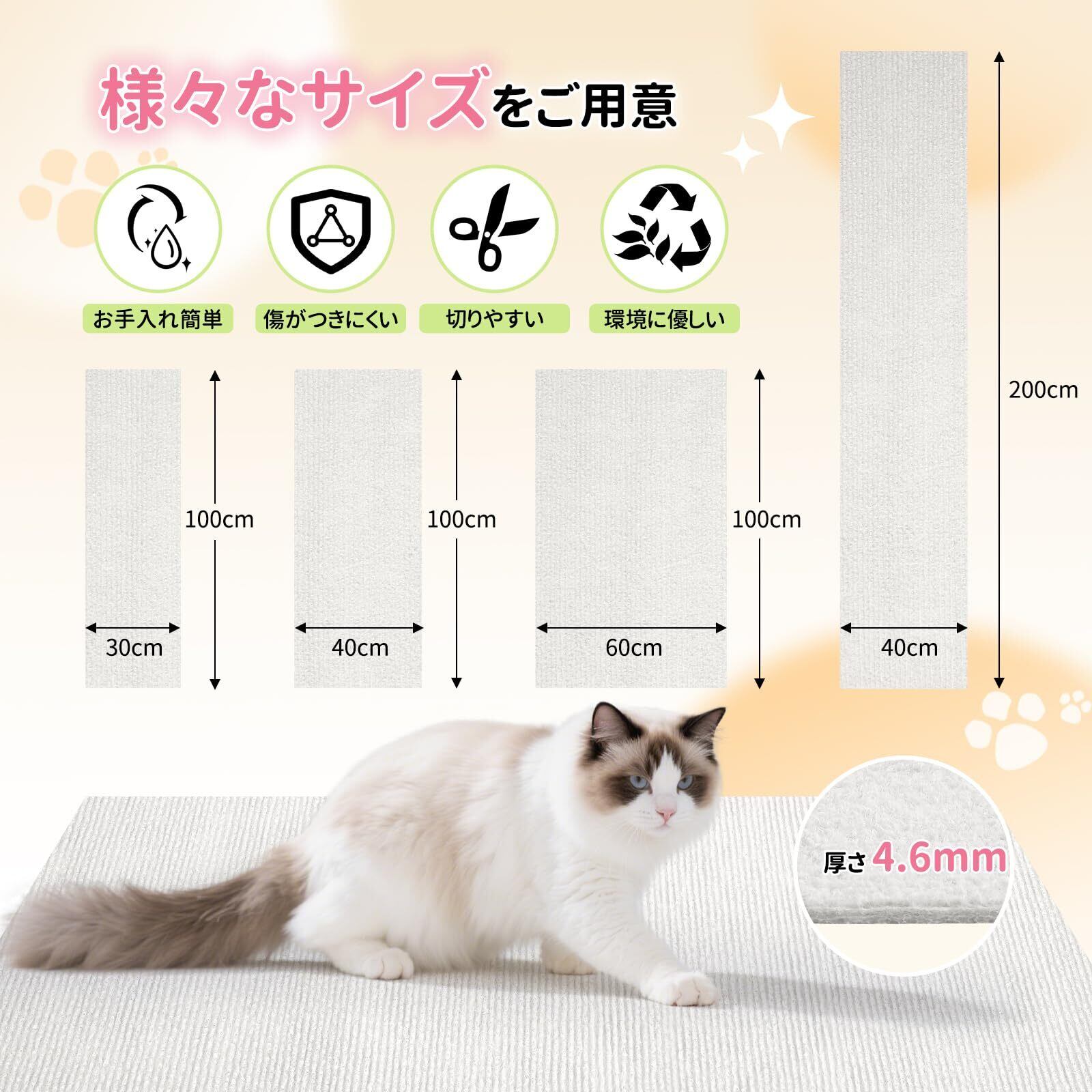 【数量限定】BOOMAGU 【獣医開発】猫 爪研ぎ 爪研ぎシート DIY自由な組み立て可能 超強粘着 剥がせる 厚手 家具傷防止 耐摩耗 引っ掻き防止 猫の爪研ぎマット キャットタワー補修用 壁/床/ソファ対応 猫 つめとぎ 防止 シート (クリームホワイト, 60*100CM) | wakuwakuland