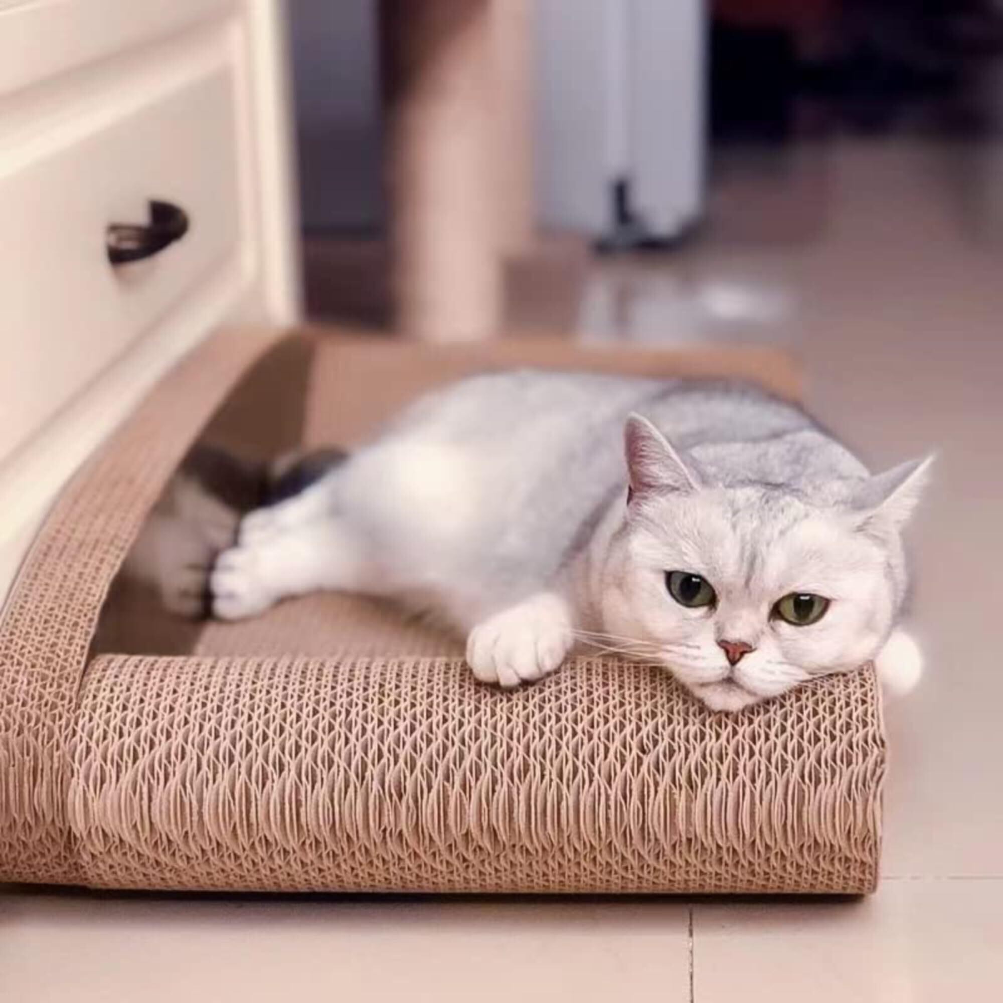 ᗢᘏᓗ 【充実した機能性】猫爪とぎ板だけでなく、猫ベッド、猫ソファーとしても使えます。猫の体にぴったりしたサイズ で、安定した体勢でのびのびと寝られます。遊んだり、登ったり、爪研いだり、転がったりすることなど猫の本能 を十分に満たし、寂しさや運動不足の悩みも和らげられます