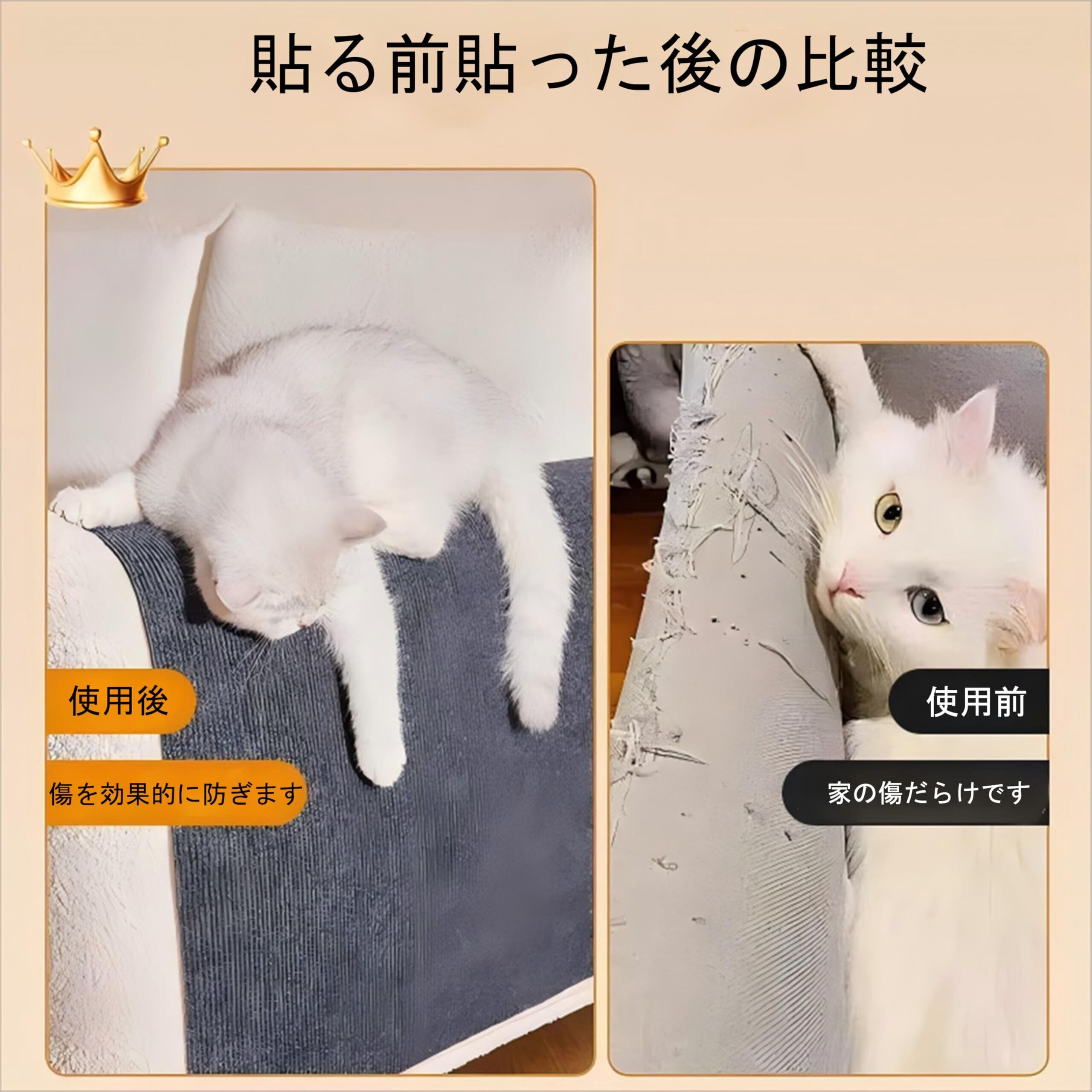 【取り付け】:猫用爪パッドは自己粘着性の裏面を有しており、裏面の保護フィルムを剥がした後、木材、ガラス、タイル、綿、リネンなど様々な表面にしっかりと固定することができます。(注意:貼り付け表面を清潔に保つ必要があり、長毛や皮革素材の家具やリベットの壁には向いていません。)取り付けが非常に簡単で便利です。 猫用爪パットは必要に応じてDIYで自由に裁断し、色を変えて自由につなぎ合わせて組み立てることができます。 猫用爪パッドは取り外し可能で、再利用可能で、角を引っ張るだけで簡単にはがすことができます。