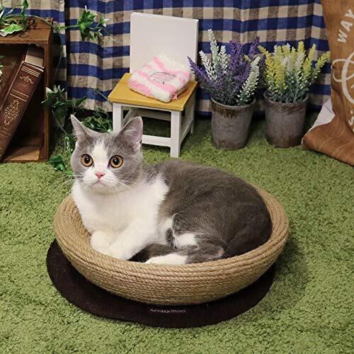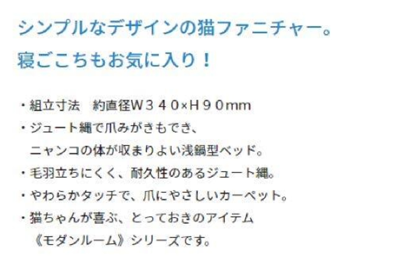 ・まんまるになって眠れるベッド型。・麻縄の持つナチュラルな風合いの素材で出来ている。・愛猫の背中にフィットする浅目の鍋型設計で爪磨きも出来るベッド。