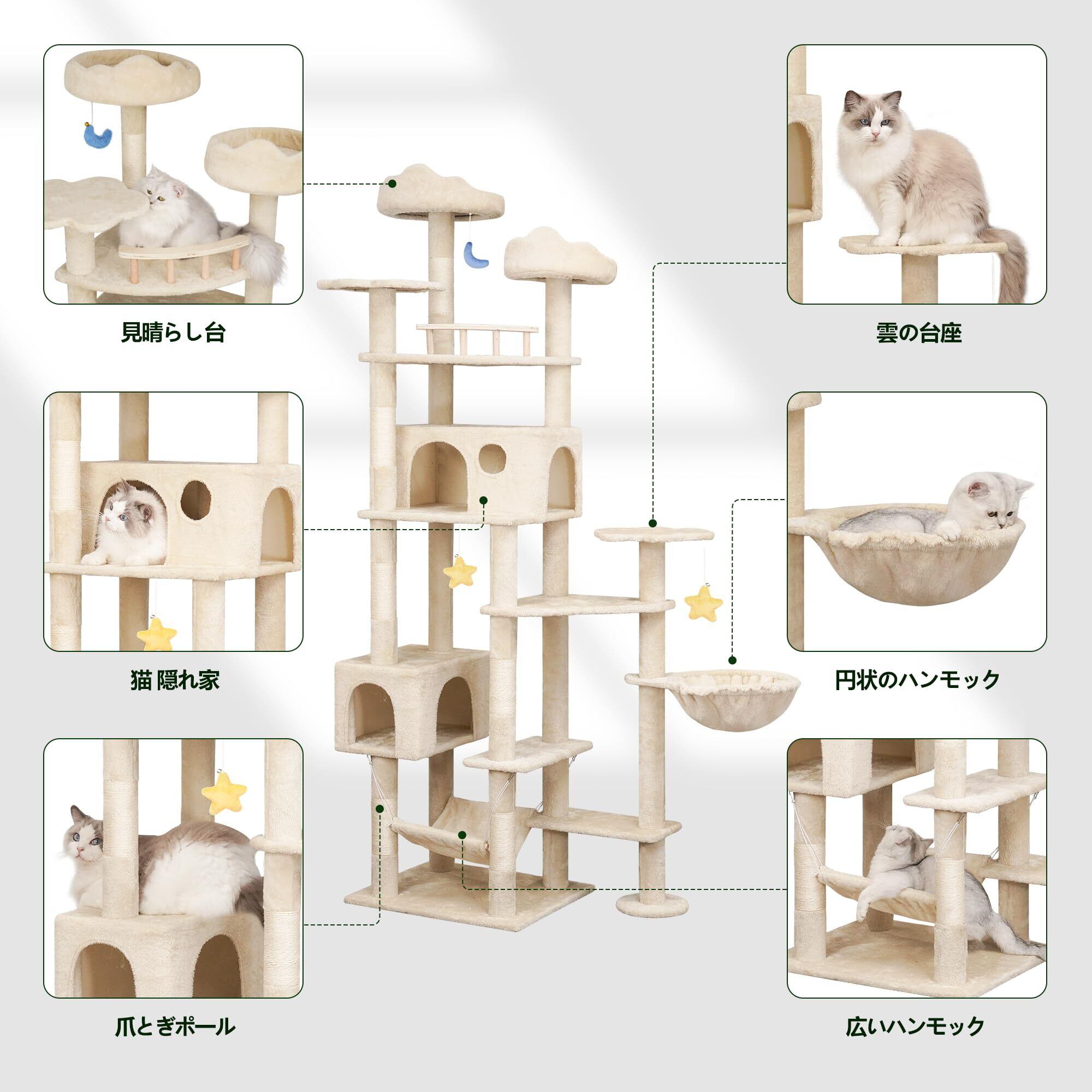 【特価商品】Meecal キャットタワー 大型猫用 猫タワー 多頭飼い 雲型い猫 ベッド 猫 ハウス 広いハンモック 天然サイザル麻爪研ぎポール 見晴らし台 ぬいぐるみ キャット タワー 人気 おもちゃ 可愛 据え置き 転倒防止 運動不足解消 - 高さ215cm ベージュ | wakuwakuland