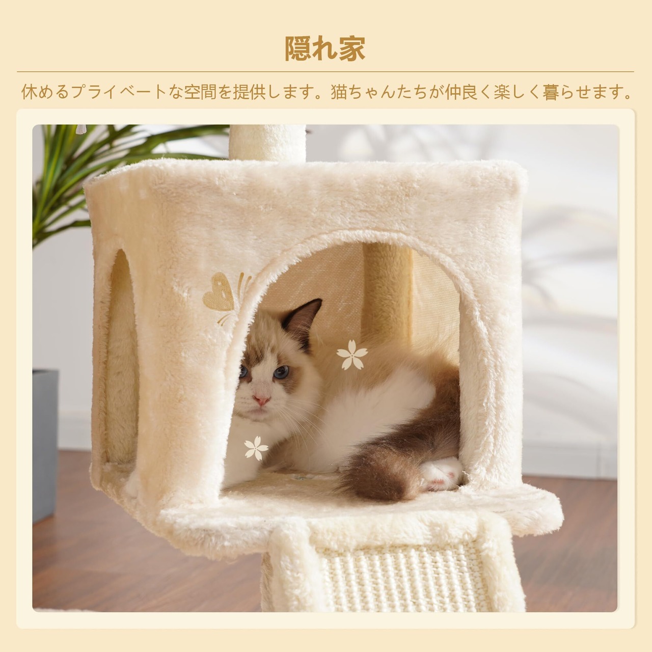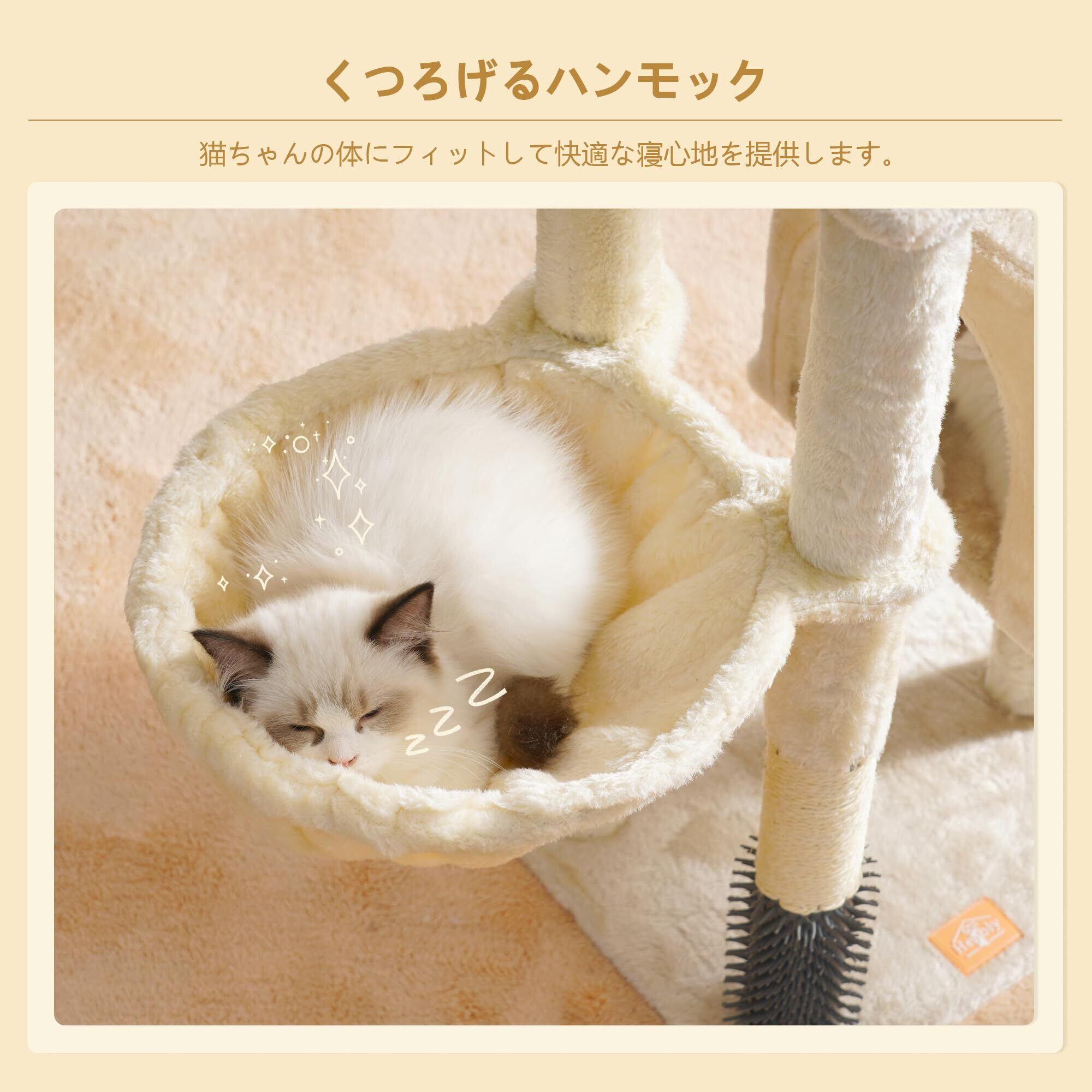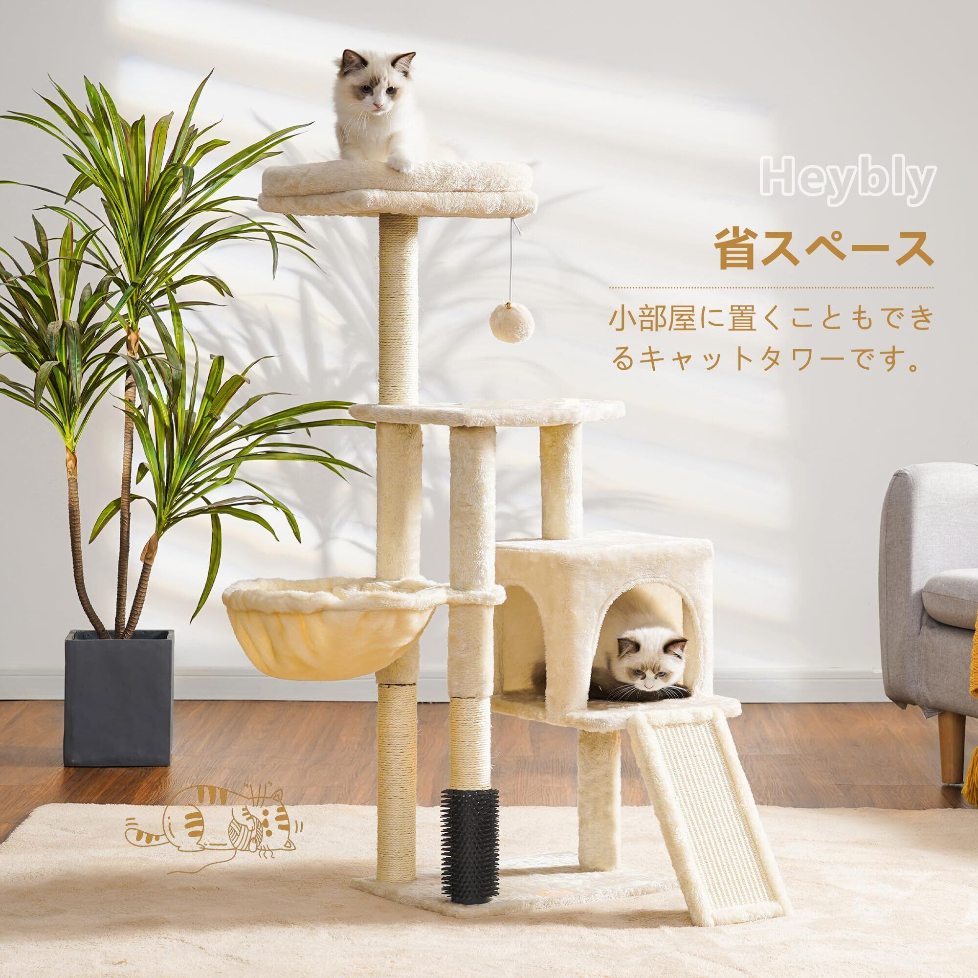 【特価セール】Heybly キャットタワー 子猫とシニア猫に最適 超スリム 据え置き型 省スペース 登りやすい ハンモック天然麻ロープを使用した爪研ぎボード 高さ108cm ベージュ HCT005SM | wakuwakuland