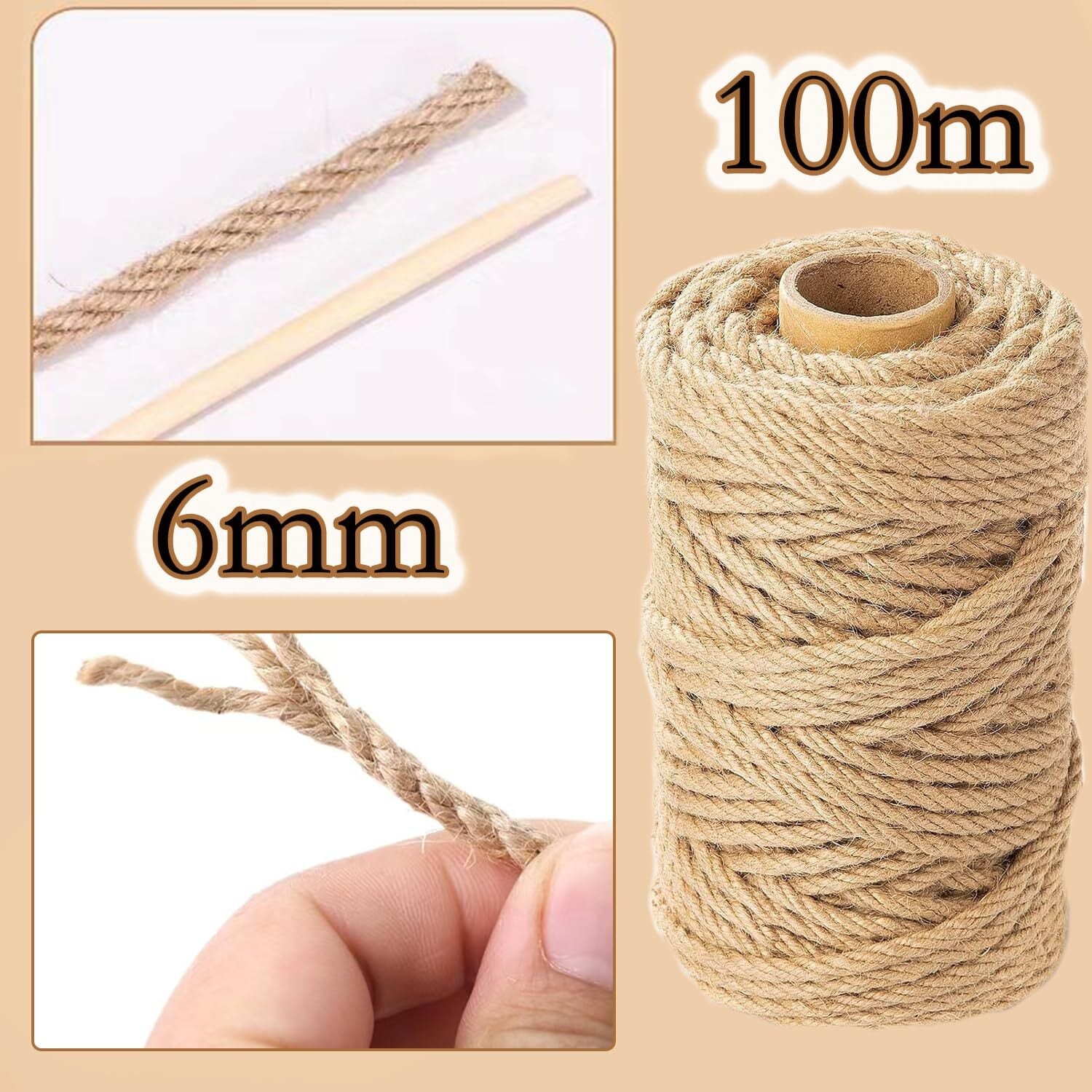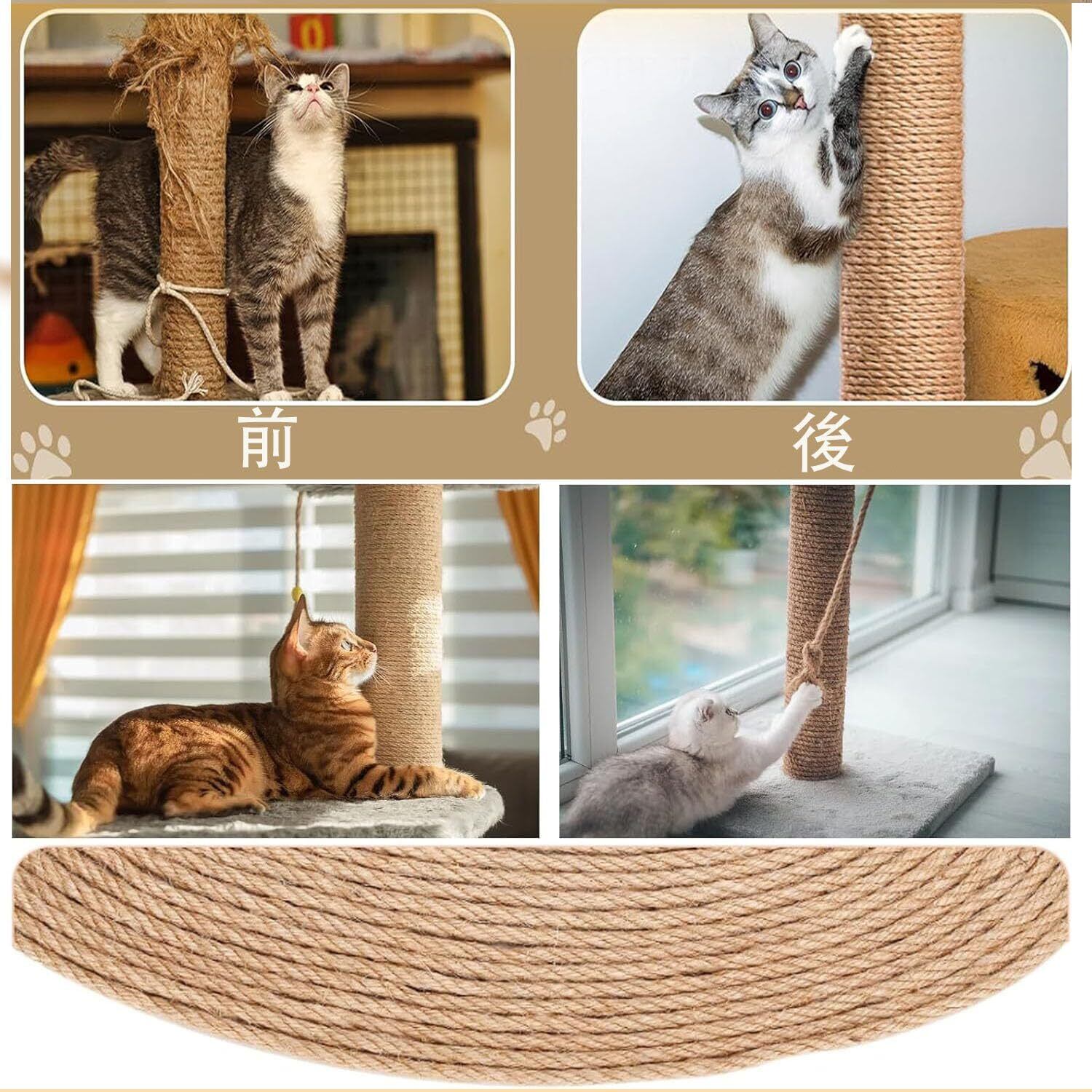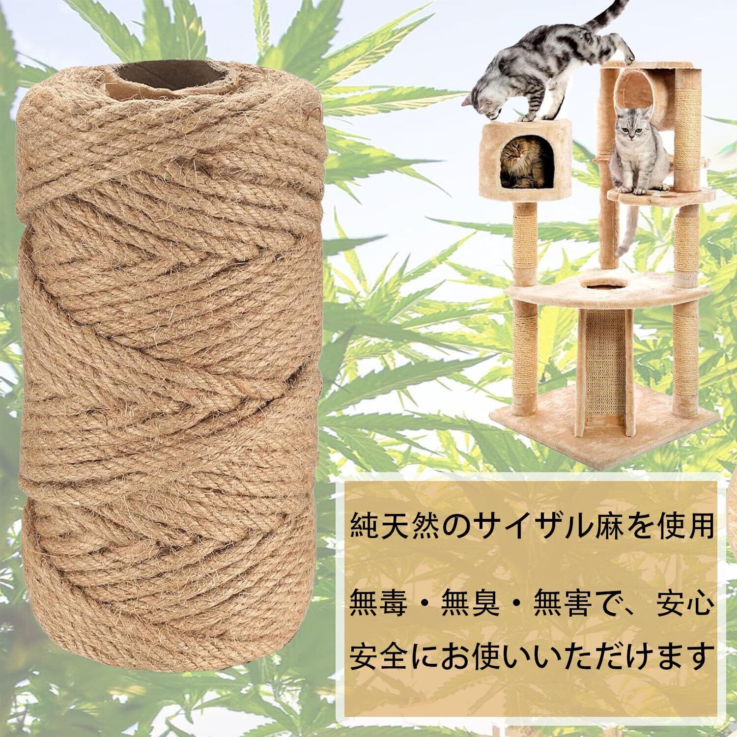 6mm 50M 麻ロープ 麻縄 キャットタワー用 剣麻 サイザル麻 爪とぎ交換用 爪研ぎ つめとぎ 交換用麻紐麻ロープ 手芸用 猫の塔を修復 キャットタワー用 手作り 修理 梱包 手作り 猫爪とぎ修理など